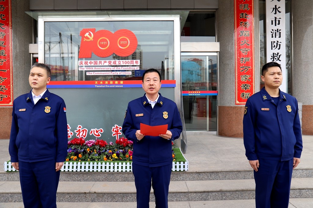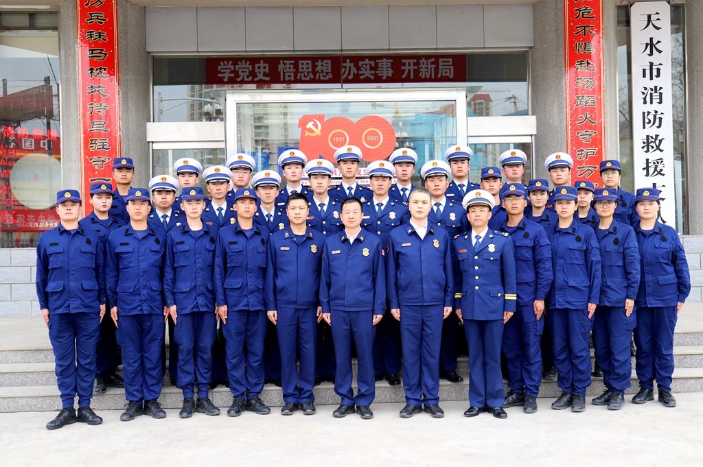 3月26日下午,天水支队举行仪式欢迎参加全省消防救援队伍条令纲要比武竞赛的30名队员们凯旋。支队政委张磊及在家党委成员、机关干部、文员、七里墩消防站全体指战员参加了仪式。