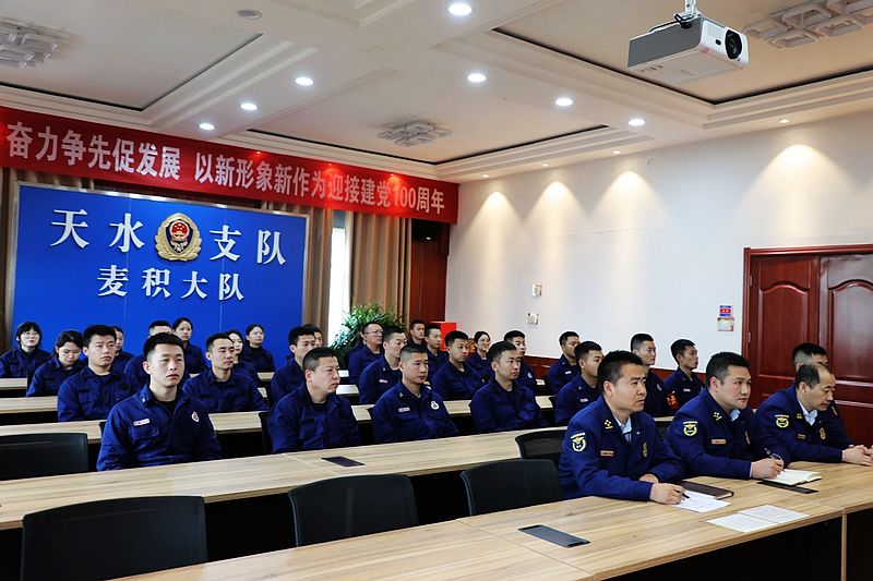 为深入学习中国共产党百年奋斗史,引导指战员继承和发扬党的优良传统,增强指战员使命感和责任感,不断推进党史学习教育走深走实。4月6日,麦积大队政治教导员伏小伟以《学党史砥砺奋进知党恩不忘初心》为题,为全体指战员讲授了党史学习教育专题党课。大队全体指战员、政府专职队员和消防文员聆听授课。
