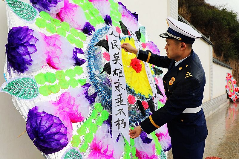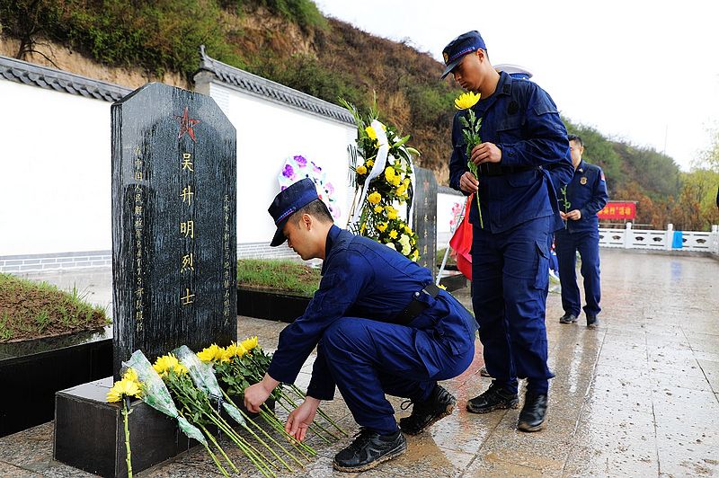 斯人已逝,浩气长存,在烈士墓碑前,指战员们冒着大雨排着整齐的队伍,怀着无比崇敬的心情脱帽、献花圈、鞠躬默哀以示悼念。天河站政治指导员董炅衢结合文字记载给指战员们讲解了烈士们的生平事迹和舍生取义的英雄壮举,并教育大家,我们不能忘记在抗日战争、解放战争为民族独立和解放做出卓越贡献的革命先烈,要好好学习他们在国家和民族危难之时毅然挺身而出、抛头颅洒热血的革命精神,我们今天的幸福生活是无数革命先烈用鲜血和生命换来的,要时刻牢记老一辈革命先烈的丰功伟绩,继承和发扬先烈们的优良传统,永远做党和人民的忠诚卫士。