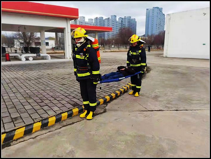 为确保此次演练贴近实战,演练前,全体指战员对单位多次进行了实地熟悉,并会同单位相关人员详细制定应急救援演练预案。演练假设在因工作人员操作不当导致气体泄漏着火,固定灭火设施被破坏,一名工作人员受到伤害,灾情发生后,企业的微型消防站人员第一时间赶赴现场进行初期火灾处置,并拨打“119”报警,张家川大队接到报警后,立即出动到现场进行救援。指挥员迅速整合现场力量,按照应急预案调整力量部署,快速成立灭火救援组、通信联络组、火场安全警戒组、罐区设备抢修组下达作战命令,依次开展了调度集结、火情侦察、现场警戒、班组协调、实操灭火等内容。经过30分钟的全力扑救,“大火”被全部扑灭,险情被消除,演练得到圆满成功。