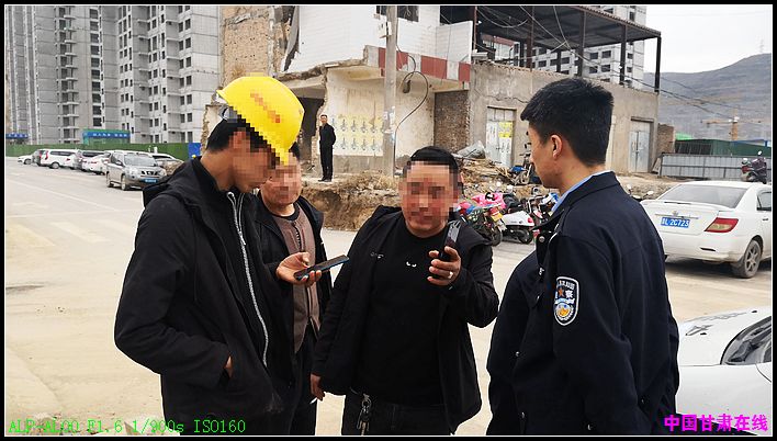 【秦南派出所】4月6日下午,在秦安县兴国镇郑川新城建筑工地上,因承包方贺某与包工头周某就工资发放一事发生矛盾,后贺某等人以用车阻挡工地大门的方式讨要工资。