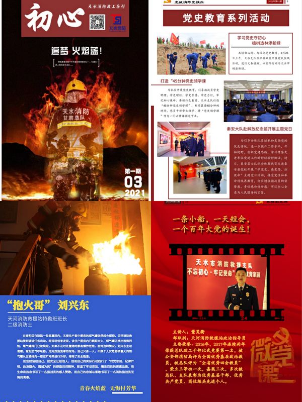 为深化党史学习教育,提升教育吸引力,天水市消防救援支队紧扣党建工作时代特点和指战员思想行为特征,积极探索教育工作新载体、新路数,创新推出“七一加油站”党史学习教育“新品牌”。