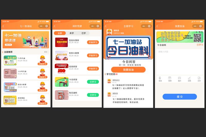 目标靶向服务,党史学习教育实起来。“七一加油站”通过打造“网上党校”、“云端党史教育馆”等多功能学习场所,实现分层分级课程定制。通过线上APP“加油”打卡,党史应知应会每日随机测试,系统积分考核等形成学习闭环,将学习教育和党建宣传融入碎片化空间,进一步丰富党史学习教育内容效果。上线“71”号汽油(包含党史大事记、党史故事等)、“119”号汽油(习近平总书记授旗训词精神、关于应急管理重要论述)、“54”号汽油(团员青年应知应会),不断提升指战员学习积极性,时时处处吸收“政能量”,促进党史学习教育和实际工作“双提升”。