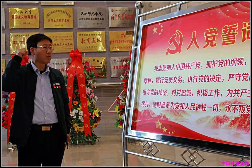 李家沟村14名党员干部在第一书记乔理,村党支部书记李念祖的带领下,来到陇南市两当县瞻仰两当兵变纪念馆。在神圣庄严肃穆的兵变纪念馆大厅,第一书记乔理带领全体党员干部面对革命先烈和鲜红的党旗,重温入党誓词,再次向党宣誓。