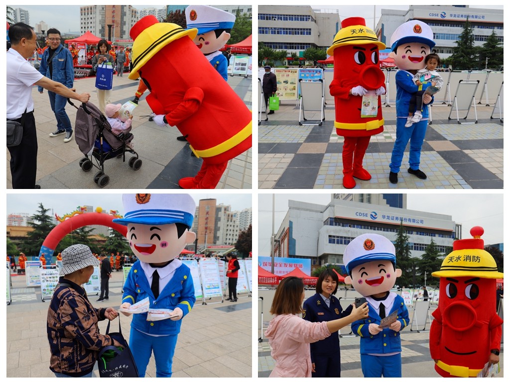 摆摊设点,普及防灾减灾知识。5月12日上午,天水支队在市龙城广场举办了全市防灾减灾日宣传活动,在活动现场,工作人员通过搭台设点、悬挂横幅、展示图版、发放消防宣传产品等形式,向前来咨询的市民普及气象灾害、火灾灾害、洪涝干旱灾害、地震地质灾害等各类灾害防治和消防安全知识。同时宣传员还对疏散通道、安全出口和人员密集场所门窗存在障碍物等重点内容向群众讲解了相关知识。此次活动共发放各种消防宣传资料10000余份,现场解答群众疑惑390余条,教育人数达12000余人,进一步加深了广大群众对防灾减灾等知识点的了解,为创建平安、和谐天水打下坚实基础。