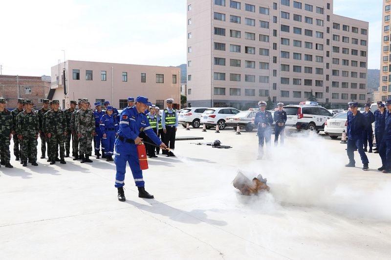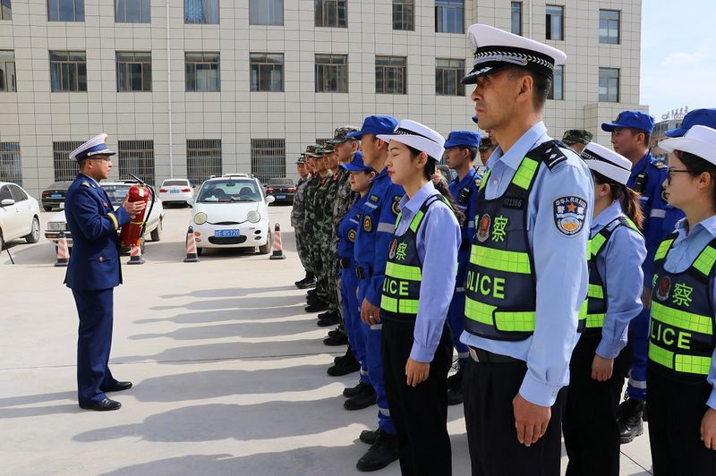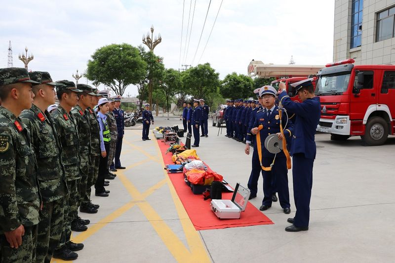 活动中,参观人员在大队宣传人员的带领下与消防器材装备进行了“零距离”接触,参观了消防车辆器材、各类常用抢险救援器材、灭火器材以及消防车的用途、性能和使用情况。消防员现场演示了抢险救援器材和操作运用和灭火器材的使用,让他们充分了解消防员在各种救援中如何使用器材装备、如何将被困人员救出,详细讲解了发生火灾时如何报警、火场自救、逃生技能及预防火灾发生等消防安全知识和消防法律法规。并实地进行了灭火实操演练。同时,武警官兵、交警中队警官分别为指战员手把手传授营区反恐小技巧及常见的交通引导手势 。