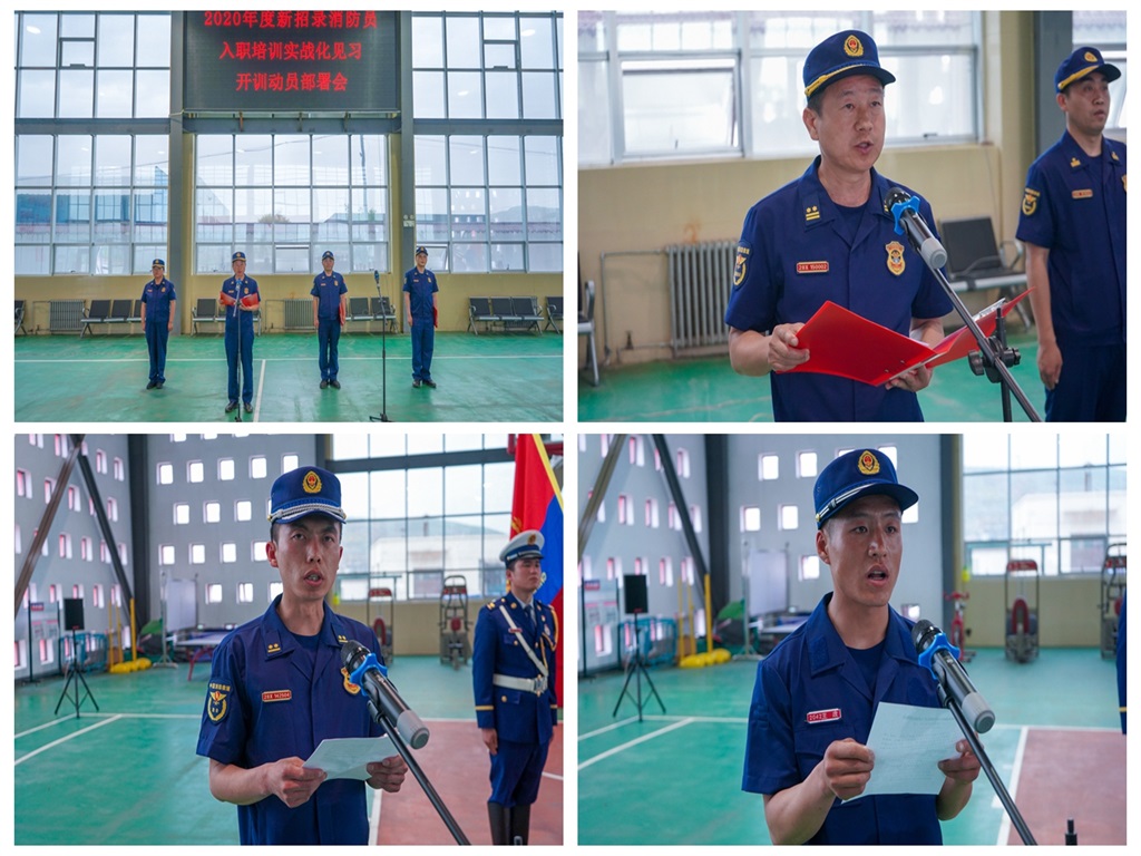 5月31日下午,天水市消防救援支队召开2020年度新招录消防员入职培训实战化见习开训动员部署会。支队政委张磊及在家党委成员、2020年度新招录的51名消防员和10名带训骨干参加了开训仪式。仪式由副支队长王文平主持。