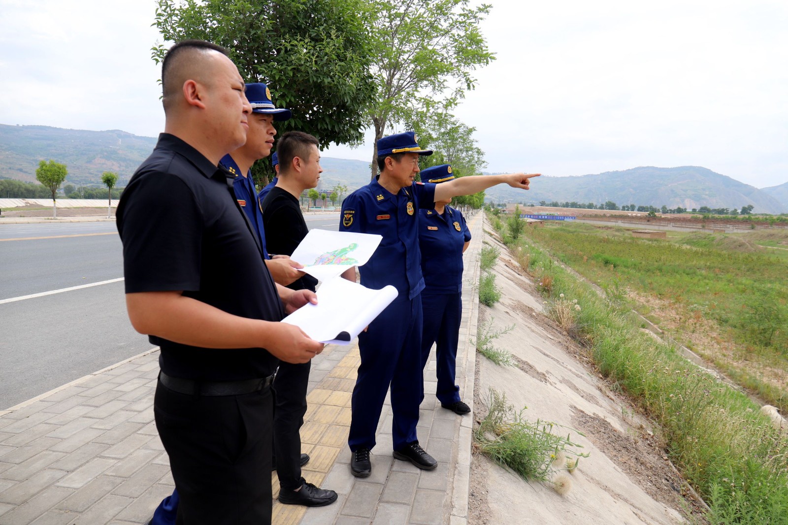 为科学、高效做好天水消防规划建设工作,加快陆港消防队站项目落地,夯实消防基础设施建设。6月2日上午,天水支队政委张磊带领支队在家党委成员,会同市自然资源局规划科、国际陆港管委会、市规划设计院等相关部门负责人深入天水国际陆港对消防队站选址开展实地调研。20210602171603_0323.jpg