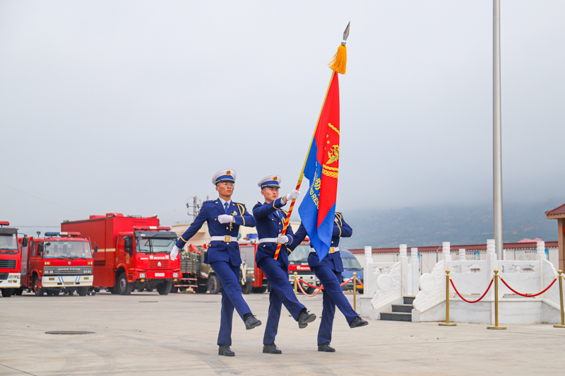 随后,组织全体指战员在国旗下进行了宣誓,面对国旗,全体指战员发出了入队时的铮铮誓言:对党忠诚、纪律严明、赴汤蹈火、竭诚为民,为维护人民生命财产安全、维护社会稳定贡献自己的一切。铮铮誓言响彻长空,激起了消防指战员心中那份“守初心、担使命”的赤子情怀,使全体消防指战员们理想信念更加坚定,为消防救援队伍的应急救援事业贡献自己的力量。