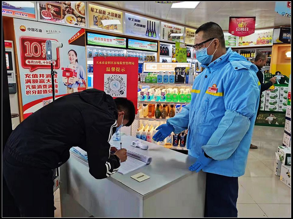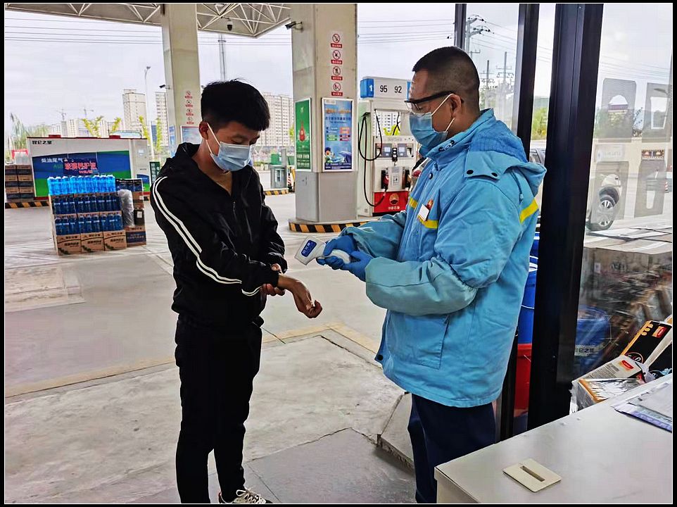 加油站作为服务型开放场所,其平稳运营事关城市的发展,突击队成员立足本职工作,带领本站青年员工严格按照疫情防控工作要求,每两小时定时对全站场地和设备开展一次消杀,车辆进站第一时间温馨提醒顾客佩戴好口罩,尽量使用移动支付,能不下车则不下车。同时按照当地政府防疫要求对中高风险区车牌进行“查看行程码、测量体温、信息登记”确保每一辆车健康进站,安全离站。
