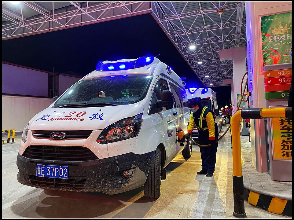面对当前国内能源紧张的形势,各加油站开通了防疫车辆加油绿色通道。在桥南加油站,青年突击队成员刘隽良和褚文婷轮流坚守在防疫保供岗位,他们说:“无论何时,都要让疫情防控车辆在进站的第一时间加满油品,这是我们青年突击队庄严的承诺!”该公司每一位青年员工在“科学防控,全力保供”的路上从未停下服务客户的青春脚步。本月截至目前各站已累计服务各类医疗救护车辆168车次。