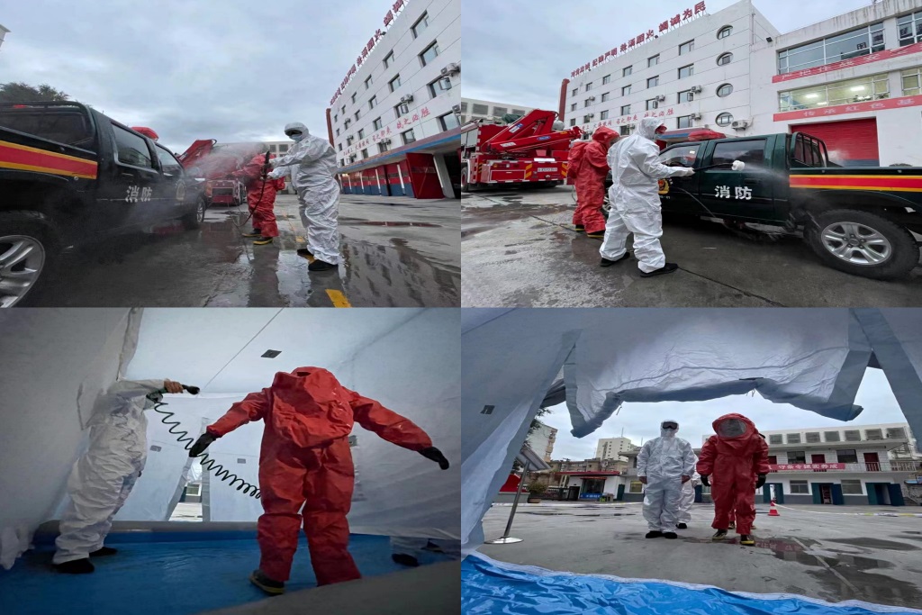 为深入贯彻落实总队关于疫情防控工作的部署要求,积极做好疫情期间应急处置工作,支队迅速行动,全面开展防疫洗消拉动演练和专项训练。