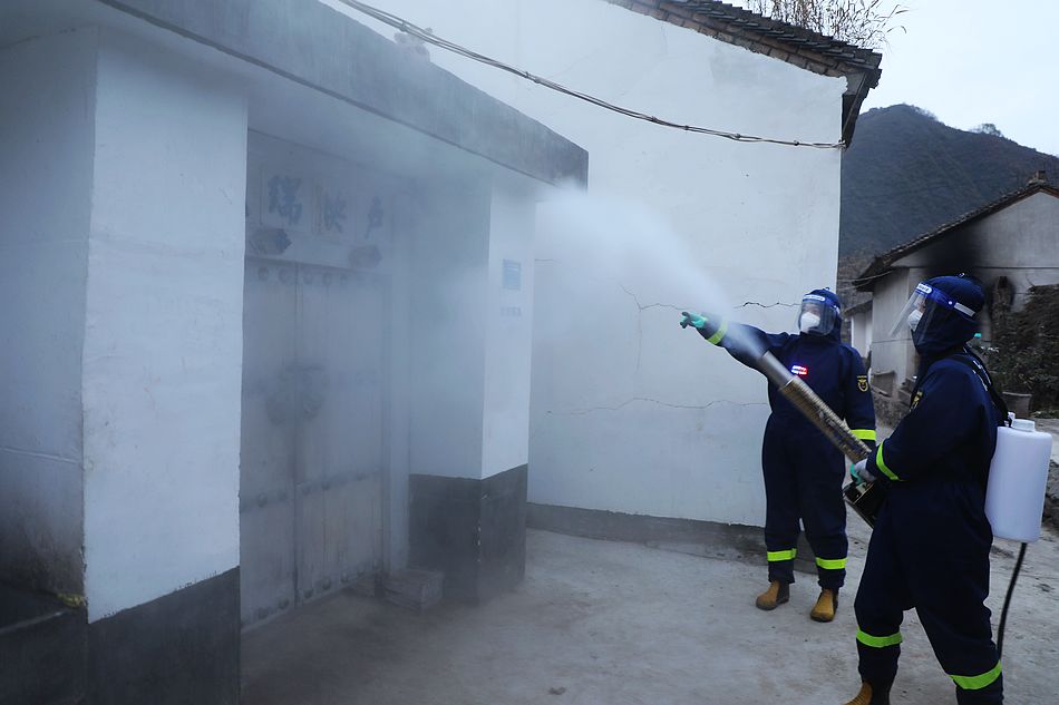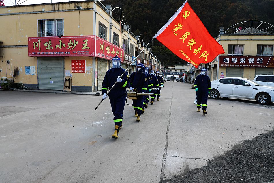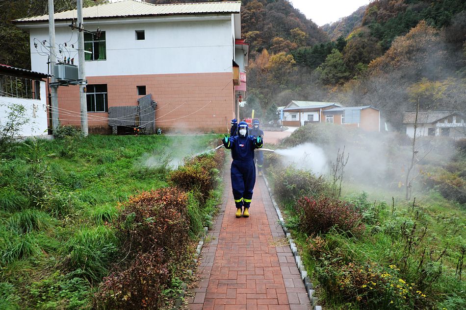 坚决完成消杀任务,构筑严密防线,保卫辖区人民安全,党员突击队的每名党员指战员严格按照《疫区消毒操作规程》,做到疫情常识全掌握、消杀程序全知晓、操作规程全熟练,确保个人防护万无一失。伴随着隆隆的轰鸣声,阵阵白雾携带着刺鼻的消毒水气味扑面而来,党员突击队的队员们全副武装,穿着厚重的防护服,背着30多斤的脉冲弥雾机,对东岔镇、三岔镇16个含确诊、隔离的重点区域、街道进行喷洒消毒杀菌处理,一处场所消杀至少需要半个小时,在持续了8个多小时消杀工作后,队员们防护服内汗流浃背,呼出的雾气早已把口罩湿透。但看到群众为他们鼓掌的时候,所有的辛苦都值得了。