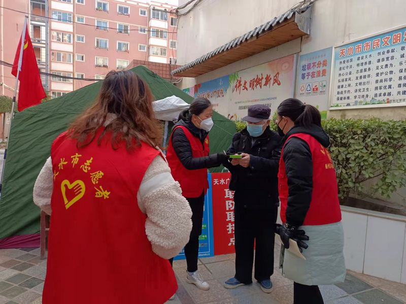 在突如其来的疫情防控战役中,别人因疫情而不能出门,社区志愿者们却成为了“逆行者”,他们用自己的无私奉献精神为坚决打赢这场疫情防控阻击战而志愿工作。在大街小巷、居民小区,志愿者们手拿小喇叭变身“流动宣传员”和“劝导员”,广泛宣传各类通告、法律法规,不断增强群众自我防护意识,劝导居民尽量少出门,“那个师傅,请把口罩戴好”,“居民朋友们,没有特殊情况请不要出门”,“戴口罩、勤洗手、少出门”,他们总是一次又一次地重复着枯燥的工作,付出终有回报,他们的辛苦努力换来了居民的理解和支持;在核酸检测采集点,志愿者变身“秩序维持员”,劝导来进行核酸检测的居民主动打开健康码,自觉保持一米距离,红马甲与大白交相辉映,共同形成了寒冷冬日里最靓丽的一道风景,用他们的无私奉献精神温暖着人们的心;在值守卡点,志愿者变身“守门员”,严格落实进出人员测温、扫码、信息排摸、消杀等疫情防控工作,不厌其烦一次又一次的重复着这句话“师傅,请打开你的健康码,扫一下进出门二维码”,志愿者们每天都在与时间赛跑、与病毒抗争,一遍一遍摸排,一步一步丈量,用实际行动筑牢疫情防控的最前线!