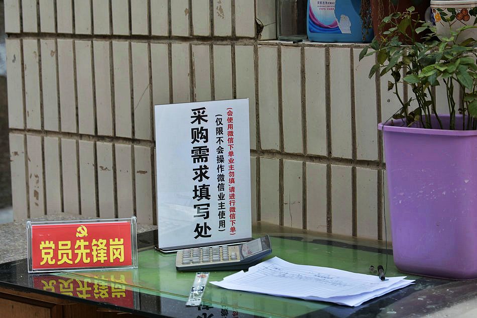 肖峰每天晚上利用业主群发布采购信息,居民们看到信息后就在群里接龙采购物资内容和数量,对一些不会使用微信的居民,肖峰在门房门口放置了一本采购物资登记表,由居民自已填写,然后,肖峰照单采购。