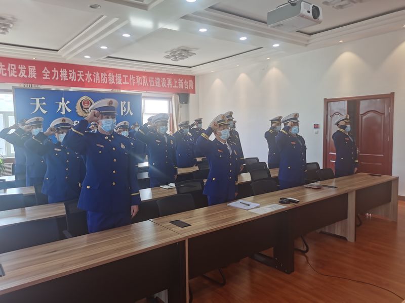 为热烈庆祝习近平总书记向国家综合性消防救援队伍授旗并致训词三周年,教育激励全体指战员牢记领袖嘱托、持续加压奋进,进一步掀起学习贯彻习近平总书记授旗训词精神新热潮,11月9日,麦积大队组织全体指战员举行重温入队誓词活动。
