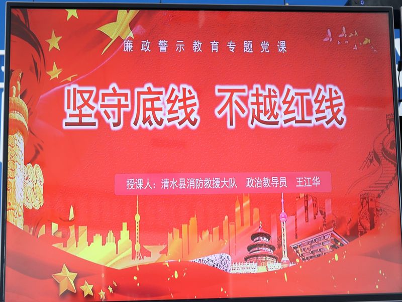 为强化党风廉政教育,绷紧纪律规矩之弦,深入推进队伍党风廉政建设,结合当前总队、支队部署开展的收送红包礼金专项整治行动,做好队伍廉政教育工作,切实营造清正廉洁、风清气正的良好氛围,12月3日,清水大队开展“坚守底线不越红线”廉政党课。