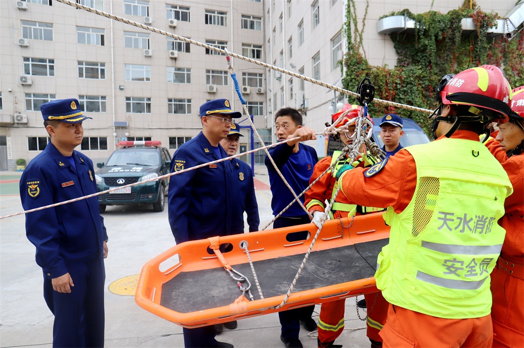 以战领训、科学施训,“实战化”导向淬炼打赢制胜“真功夫”。制定下发了《优化重组全市消防救援专业队伍的方案》,进一步提升队伍专业化水平。先后开展地震、水域、化工、低温雨雪冰冻灾害救援处置等拉动演练12次。建立多部门联席会议制度,不断完善与公安、应急、地震、气象、水利等部门联勤联战,建立健全监测预警、信息共享、会商研判、指挥协调等工作机制。开展高空救援、水域救援等专业培训,年内51人取得绳索救援、水肺潜水、舟艇驾驶等专业资质。各级累计开展重点单位熟悉1100余家次,实地演练580余次。坚持“每战必评”,年内组织召开支队级战例研讨会12次、战训大讲堂12期,进一步加强指战员业务理论水平。防汛抗洪期间,根据任务需要支队抽调36余名指战员,5辆消防车以及装备器材和各类保障物资驻扎陇南前置备勤;并于7月23日在武山县开展全市洪涝灾害实战拉动演练,支队各级全力做好抗洪抢险和跨区域增援的各项准备,并得到了各级领导一致肯定。
