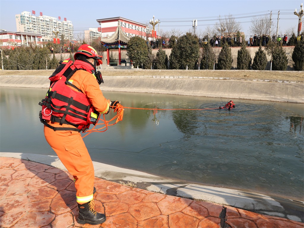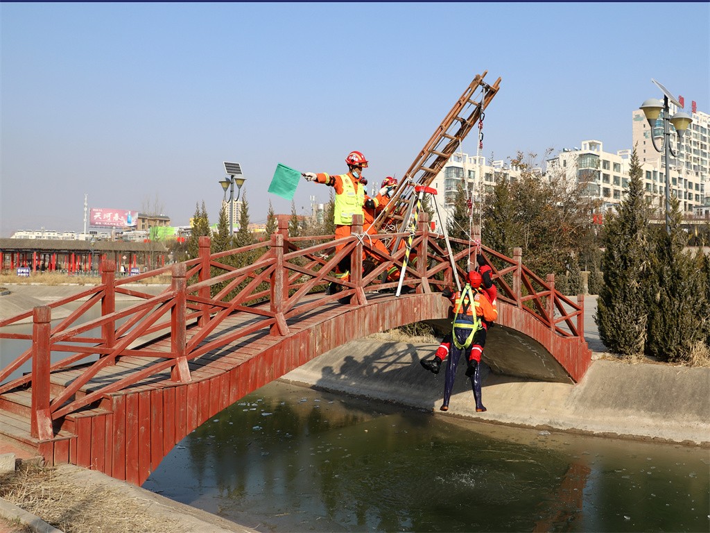 新年伊始,为扎实做好低温雨雪冰冻灾害应急救援准备工作,科学应对低温雨雪冰冻灾害,规范和优化作战力量编成,进一步强化专业队伍实战能力。按照市委、市政府关于加强防灾减灾救灾工作的要求,进一步检验全市应急救援队伍快速响应和处突能力,全面适应“全灾种、大应急”的任务需求,加强全市各相关职能部门、单位联勤联动的应急救援体系建设,天水支队组织在辖区秦安县葫芦河水上公园开展全要素低温雨雪冰冻条件下水域救援实战拉动演练。责任区域秦安县应急、公安、卫健、水务、工信等15个部门联合参演,秦安县党政相关领导出席活动。