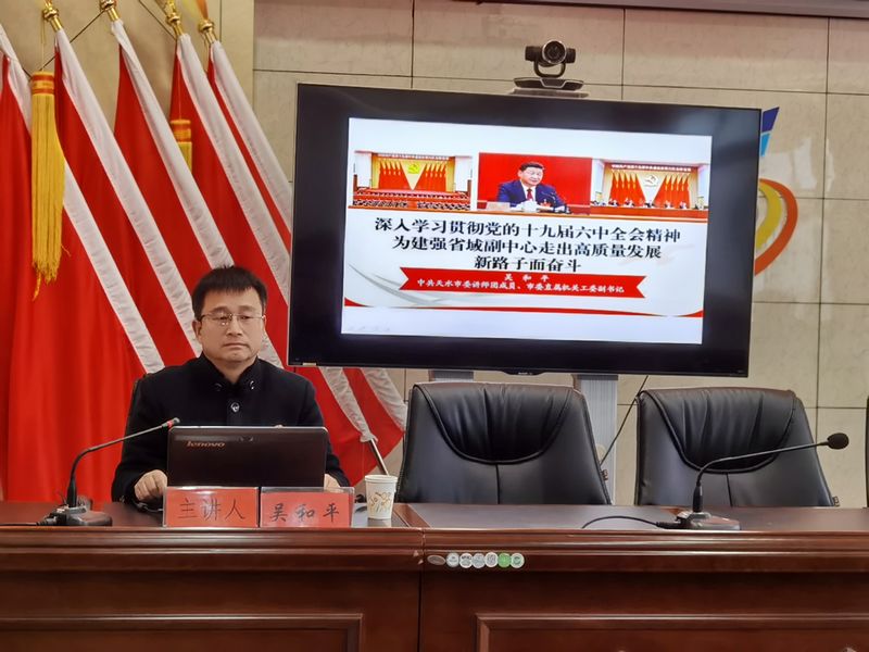 (通讯员 胡泽庭)1月7日上午,天水公路事业发展中心高速公路养护所举行党的十九届六中全会精神宣讲会,市委讲师团成员、市委直属机关工委副书记吴和平以《深入学习贯彻党的十九届六中全会精神、为建强省域副中心走出高质量发展新路子而奋斗》为题,就党的十九届六中全会精神进行了宣讲辅导。