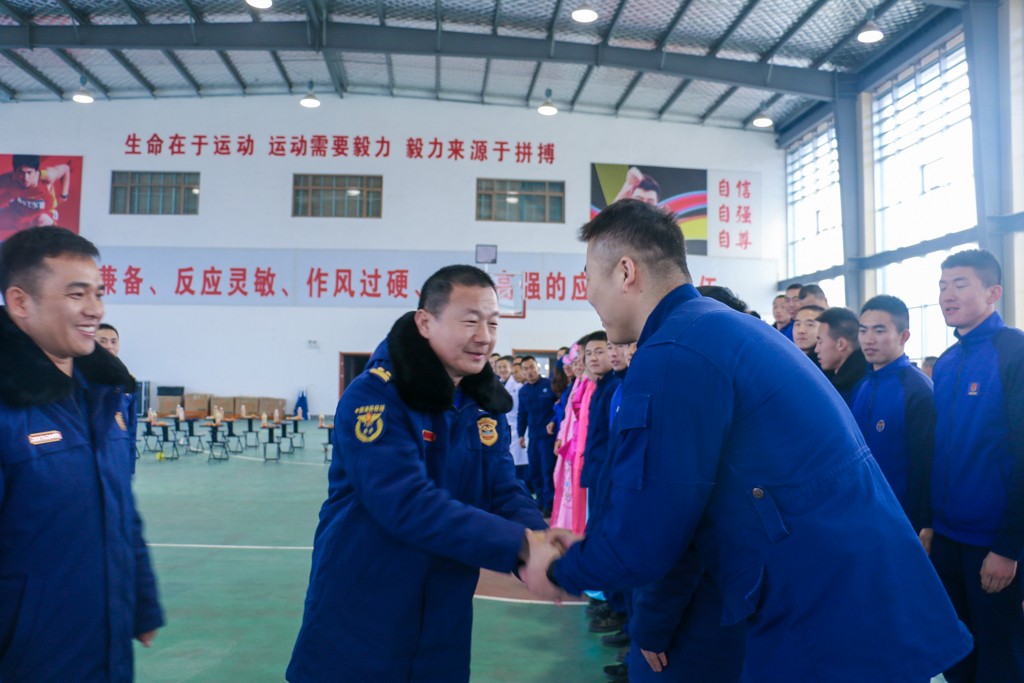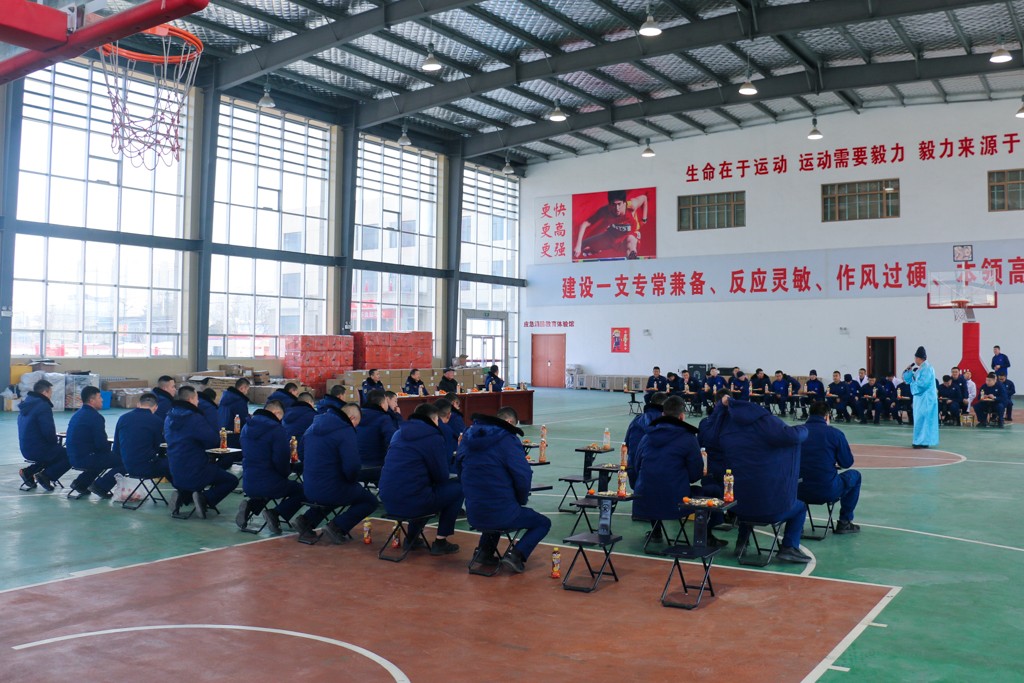 联欢会开始之前,政治委员张磊代表支队党委向二十里铺站全体救援人员及新训专职队员发表了新年致辞,向长期以来奋战在灭火一线的全体指战员表示亲切的慰问!向全体消防救援人员家属表示衷心的感谢及新春的祝福!