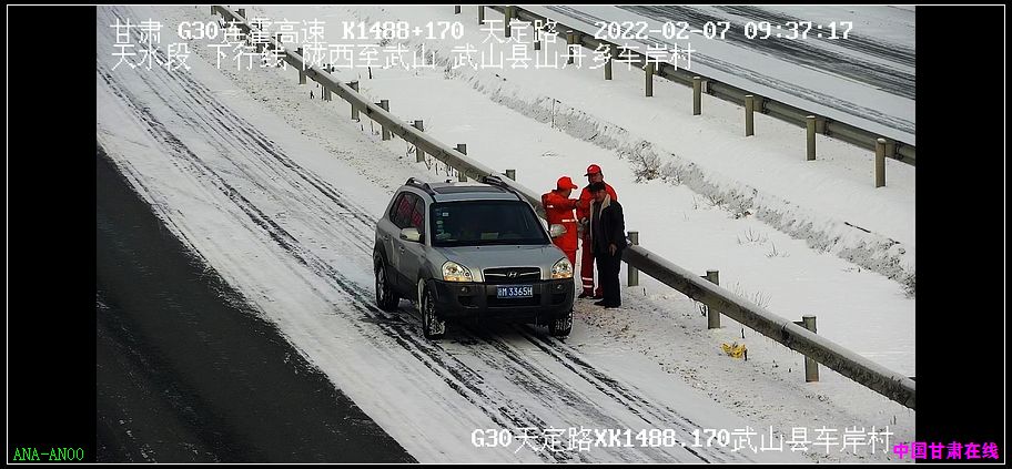 中国甘肃在线天水讯(通讯员 胡泽庭)2月7日上午9时30分,天水公路事业发展中心值班人员在路网监测与应急指挥中心监控大厅浏览巡视时,发现一辆SUV停在G30线天定高速下行线K1488处超车道(武山县鸳鸯镇车岸村附近)无法移动,情况十分危险。值班人员立即电话通知养护单位高养所赶赴现场查看。