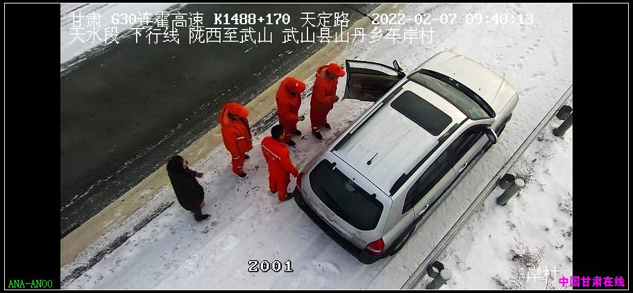 五分钟后,正在巡查的高养所武山养护工区区长张小建带领刘仲祥、李佩伟和刘国栋三名同事快速赶到了现场。车内是一对夫妇,年龄约60岁,看到他们说“我们手足无措,远远看到养护车闪着警示灯,有希望了,救星来了”。张小建询问司机得知车辆能挂挡但是前进不了,车内空凋也无法使用,他下意识的反应是将车辆和驾驶人马上转移到安全位置,避免交通事故。随即他和同事一方面将司机的警示三脚架放置在车后警示,一方面安抚司机情绪。当时车岸村附近的气温零下10摄氏度,他们4个人没有戴手套,不顾冰冷的车体,二话不说便帮助司机推车。车辆要横跨超车道、行车道直到应急车道,推车过程中,张小建的电话响了,原来是监控大厅值班人员打来的提醒电话“你们身后有一辆车飞速驶来,你们推车注意安全”。指挥中心工作人员的心也提到嗓子眼,他们一面调整路边固定监控摄像头的方位、确保图像覆盖救助过程,一面紧紧盯着监控屏幕,有危险通过电话提醒养护人员,这一套“天眼”系统也在守护的他们的安全。推了50米,抛锚车辆到了港湾式停车带的较安全位置,张小建提醒夫妇二人撤离到了护栏以外等待救援。夫妇二人拿出300元钱,硬往张小建手里塞,张小建摆摆手说“你们别这样,这是我们公路人应该做的”,夫妇二人竖起了大拇指,连声道谢:“谢谢,你们好样的。如果没有养护职工的及时帮助,我们真不知道该怎么办,太感谢你们了!”