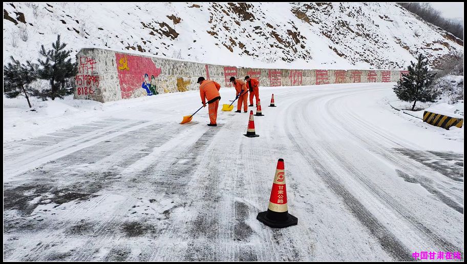 中国甘肃在线武山讯 受冷空气影响,近日,武山县南部区域时有雨雪天气,为保障公路安全畅通,确保人民群众春节期间出行安全,武山公路段以雪为令,及时组织人员机械上路防滑保畅。重点对S208线洛礼路界牌山隧道附近、背阴、弯道等路段撒铺防滑料、融雪剂,保障春节期间道路安全畅通。(甘肃省天水公路事业发展中心武山公路段 刘志伟 )