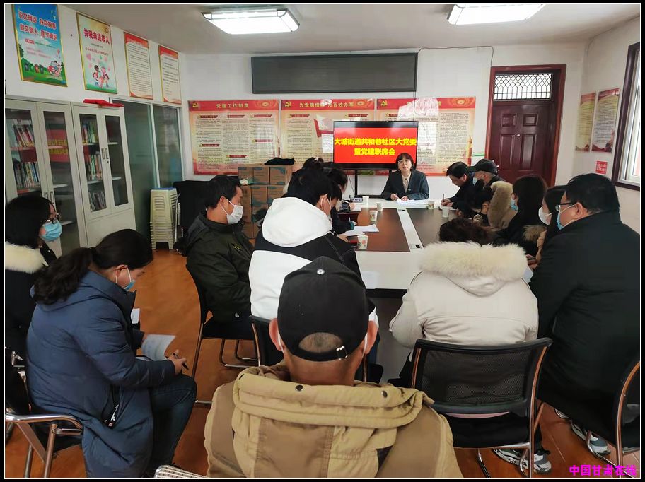 中国甘肃在线秦州讯 为充分调动大党委成员单位参与社区建设的积极性,增强社区与辖区单位之间的联系与沟通,形成社区建设工作的整体合力。1月27日,天水市秦州区大城街道共和巷社区召开了大党委暨党建联席会议。社区大党委成员、辖区单位负责人、小区物业负责人等20多人参加了会议。