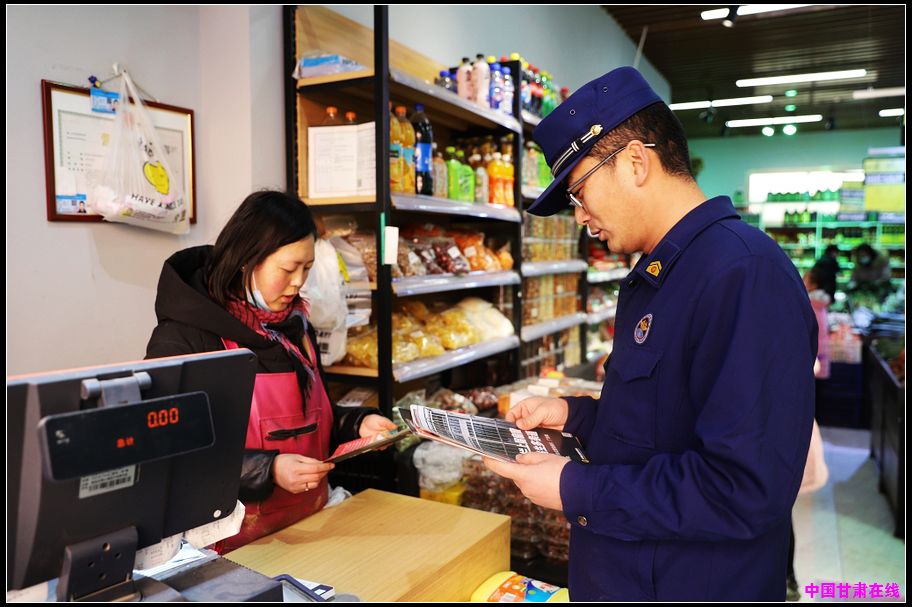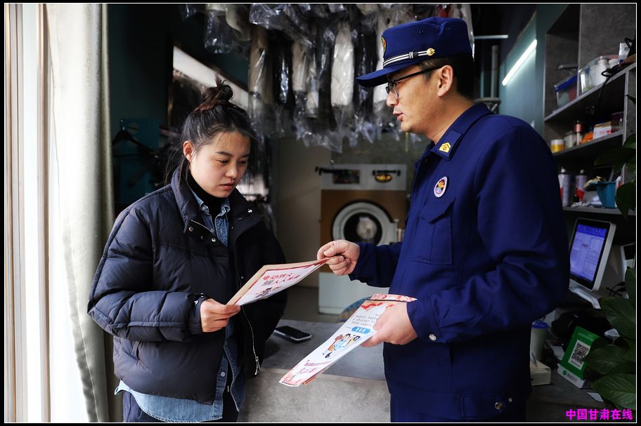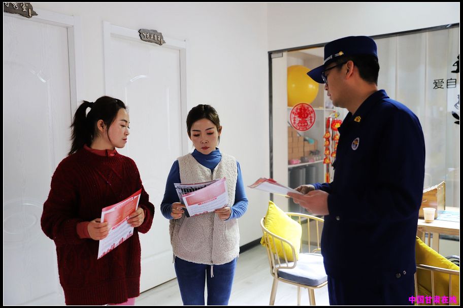 中国甘肃在线秦安讯 为进一步扩大消防宣传覆盖面,提高“九小场所”的消防安全意识。近日,秦安县消防救援大队结合实际情况,组织消防宣传人员走进辖区“九小场所”开展消防安全宣传活动,为商户送去“平安符”。