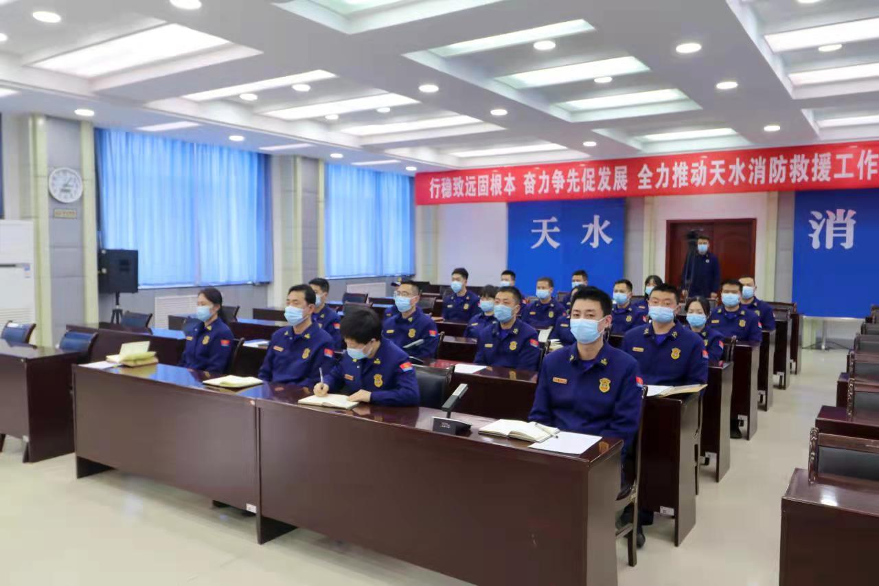 为深入学习贯彻习近平总书记重要训词精神,教育引导全市消防救援人员永葆忠诚政治本色,积极担当作为,奋力推动全市消防救援事业高质量发展,以优异成绩迎接党的二十大胜利召开。根据总队通知要求,2月21日,天水支队召开“喜迎二十大,全力保平安”深化“牢记领袖训词,永做忠诚卫士”主题教育动员部署会,会议由支队长牛小强主持,政委张磊作动员讲话,除执勤值班以外全体消防救援人员参加会议。