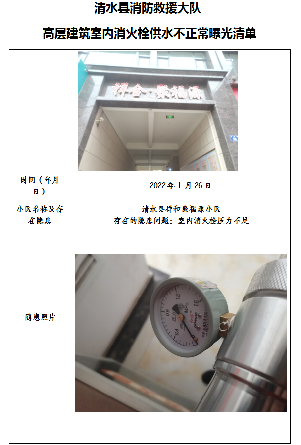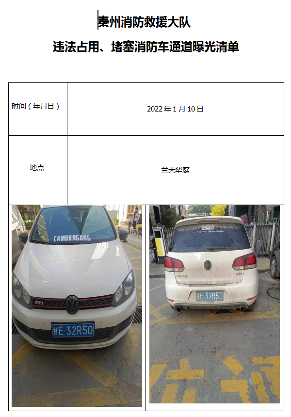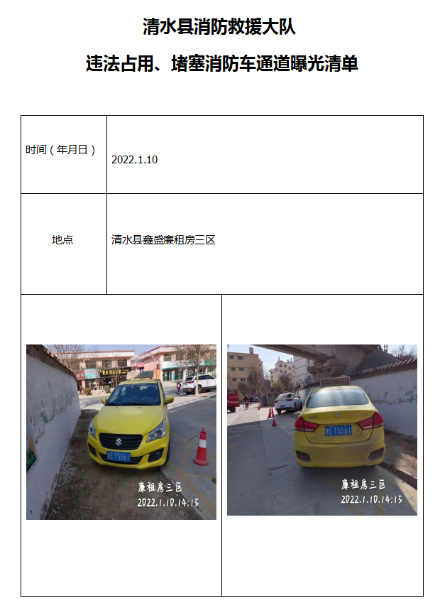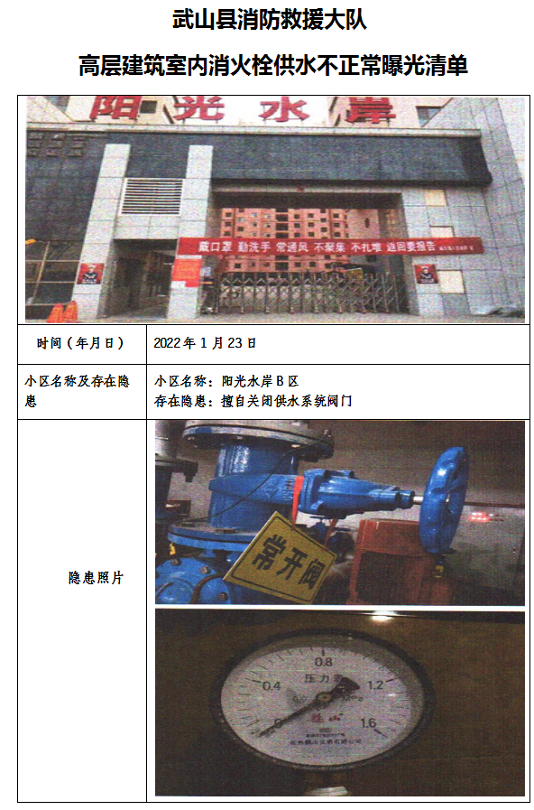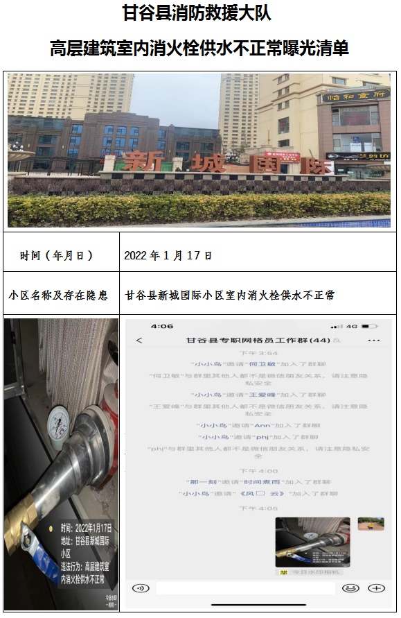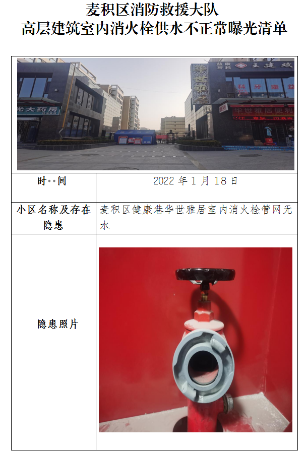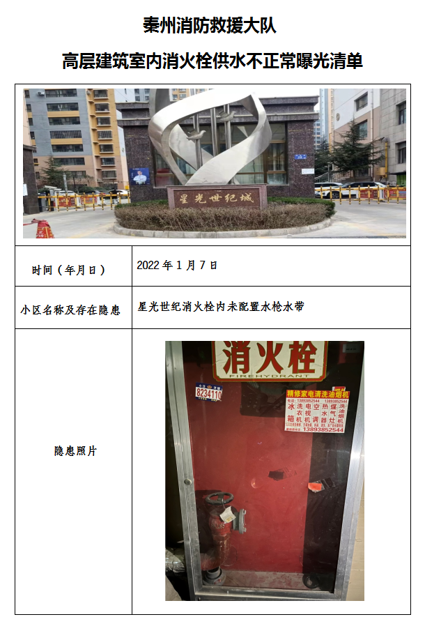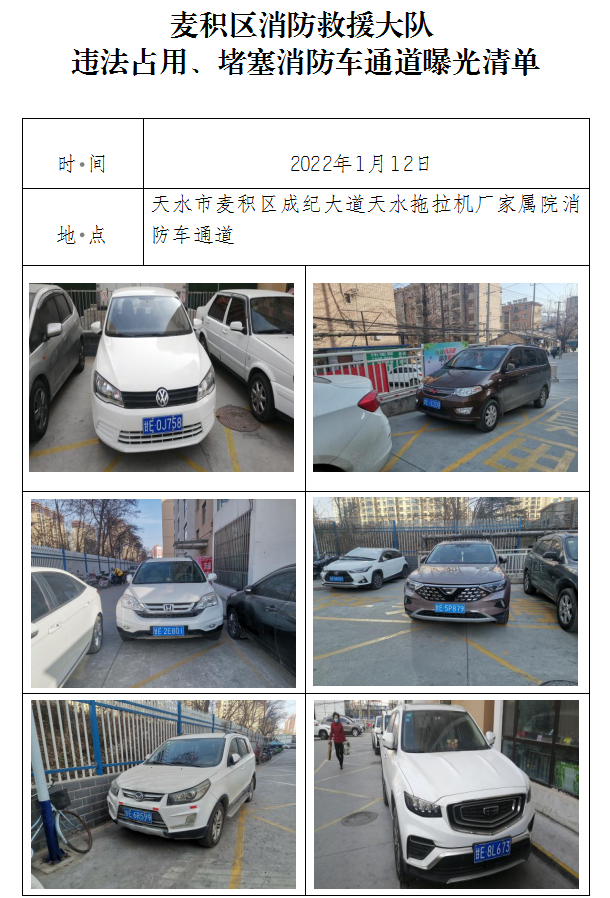 天水市消防救援支队对违法占用、堵塞消防车通道及高层住宅小区室内消火栓供水不正常1月份集中曝光