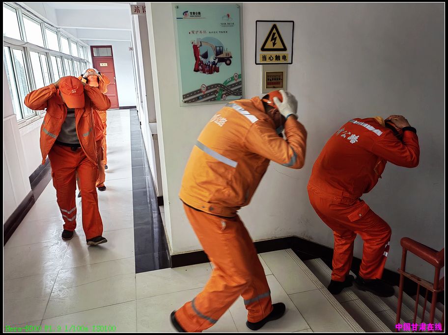 演练开始前,段专职安全员对地震疏散演练目地、演练流程以及避险原则、自救互救等防震小知识进行了重点讲解。随着总指挥口令:“地震应急疏散演练马上开始,各应急救援小组立即启动防震减灾应急预案”,秦州公路段地震应急演练随即开始。随后办公楼内警报响起,全体职工停止手上的工作,迅速抱头、躲避在各自办公桌下或办公室承重墙旁,并尽可能用其他物品保护头部。警报结束,在各楼层疏散指挥员的引导下,大家有序、快速地从办公楼里按照指定逃生路线撤离至安全地带。此次参演36人,演练疏散用时1分钟,做到了全程确保安全无意外,演练获得圆满成功。