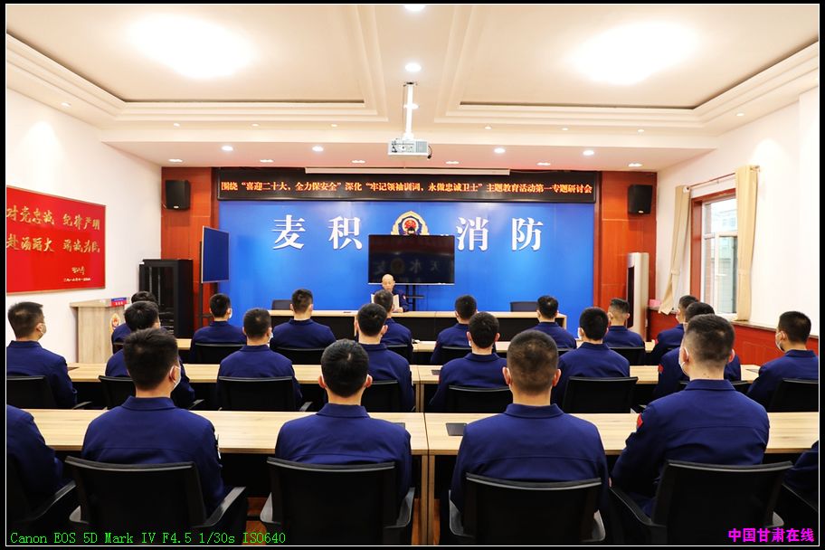 中国甘肃在线麦积讯 为进一步引导教育消防救援人员坚定理想信念,树立优良作风,提升队伍凝聚力、战斗力。近日,麦积大队组织开展“喜迎二十大,全力保安全”深化“牢记领袖训词,永做忠诚卫士”主题教育第一专题研讨会。
