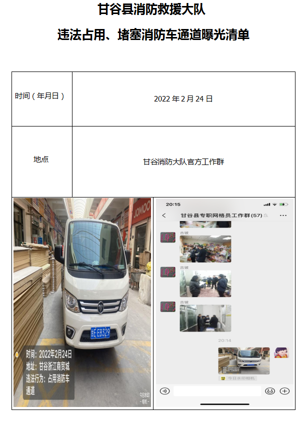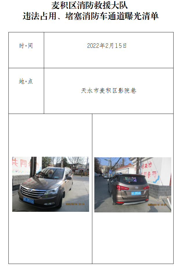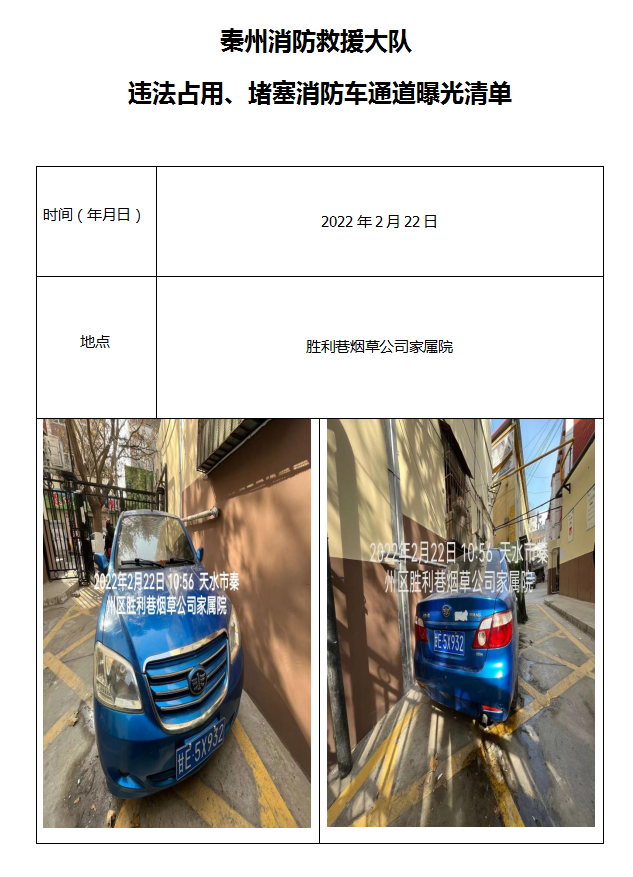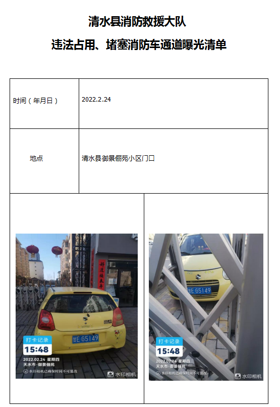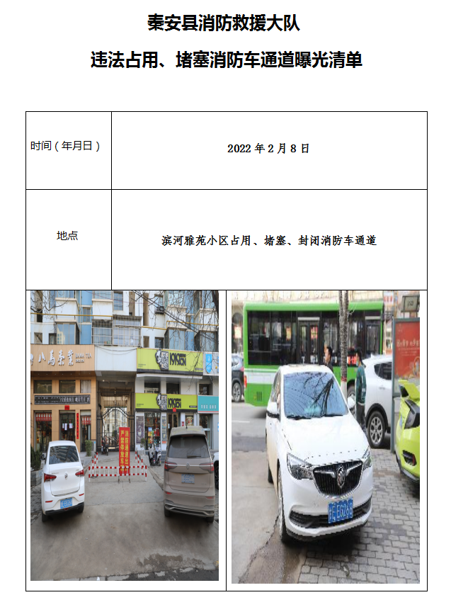 天水市消防救援支队对违法占用、堵塞消防车通道及高层住宅小区室内消火栓供水不正常2月份集中曝光
