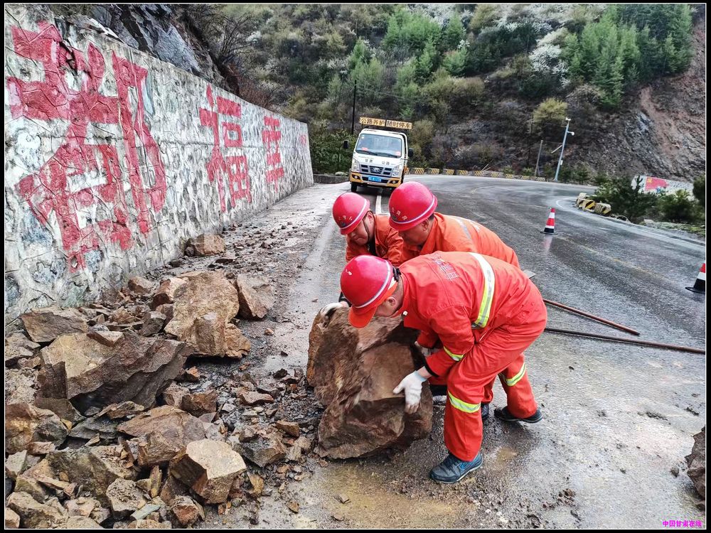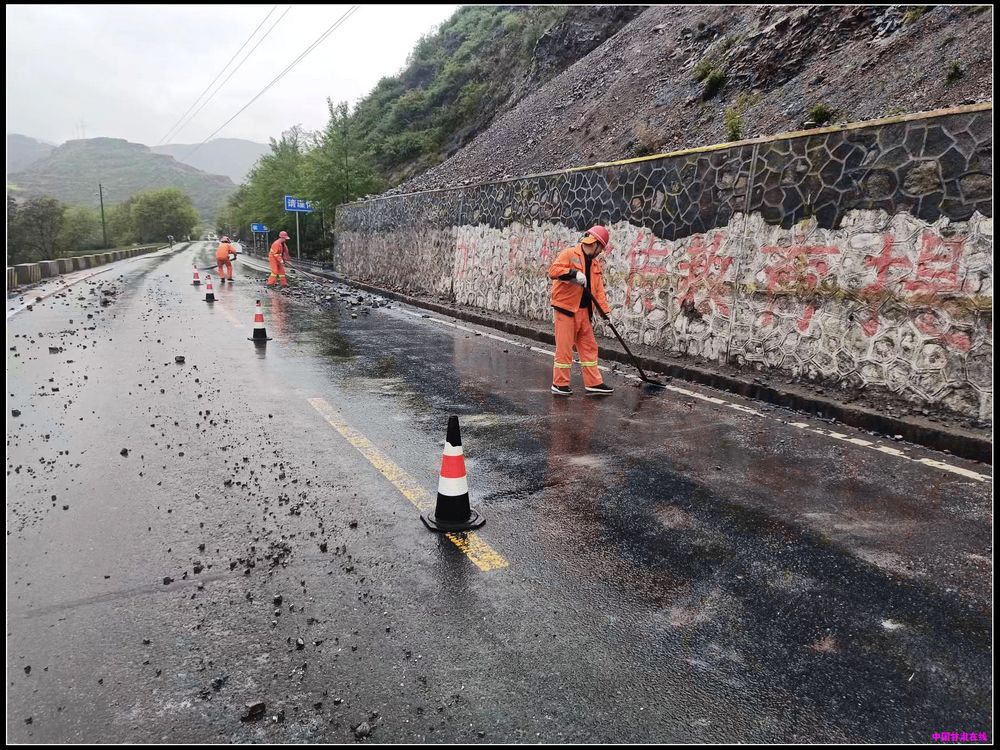 在巡查过程中,及时清理影响水流畅通的边沟、路面泥石流、桥梁泄水孔等排水系统堆积物,重点对易落石塌方路段进行安全隐患排查。职工冒雨清理影响行车安全的落石和零星塌方,有效保障了管养公路的安全畅通。
