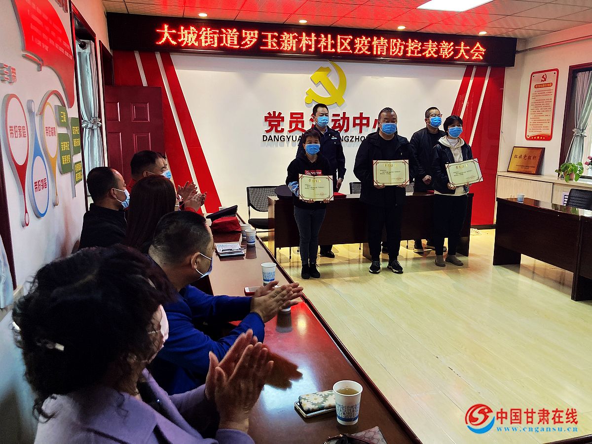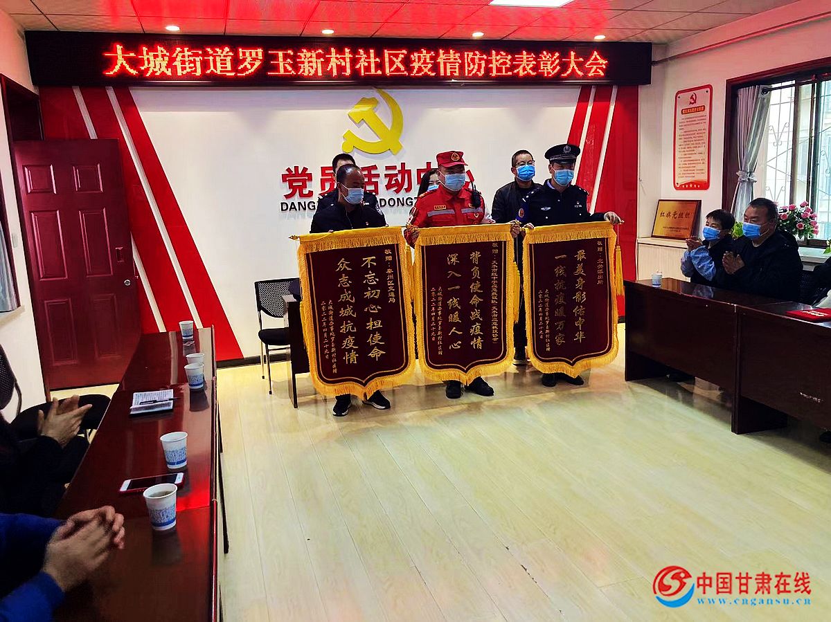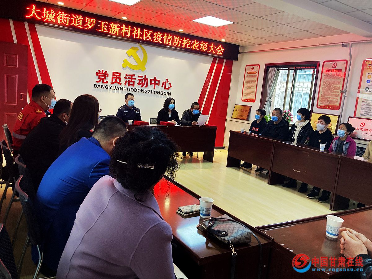 中国甘肃在线秦州讯 为总结新冠疫情防控工作,表彰疫情防控工作中表现突出的党员和无私捐助的商户,2022年4月29日下午,天水市秦州区大城街道罗玉新村社区召开了以“共抗疫情 感恩有你”为主题的疫情防控表彰大会,为在疫情防控期间作出贡献的各位党员志愿者、值守卡点志愿者发放了荣誉证书,为慷慨捐助的企业商户赠送锦旗,对大家的辛勤付出和对社区工作的大力支持表示衷心的感谢。