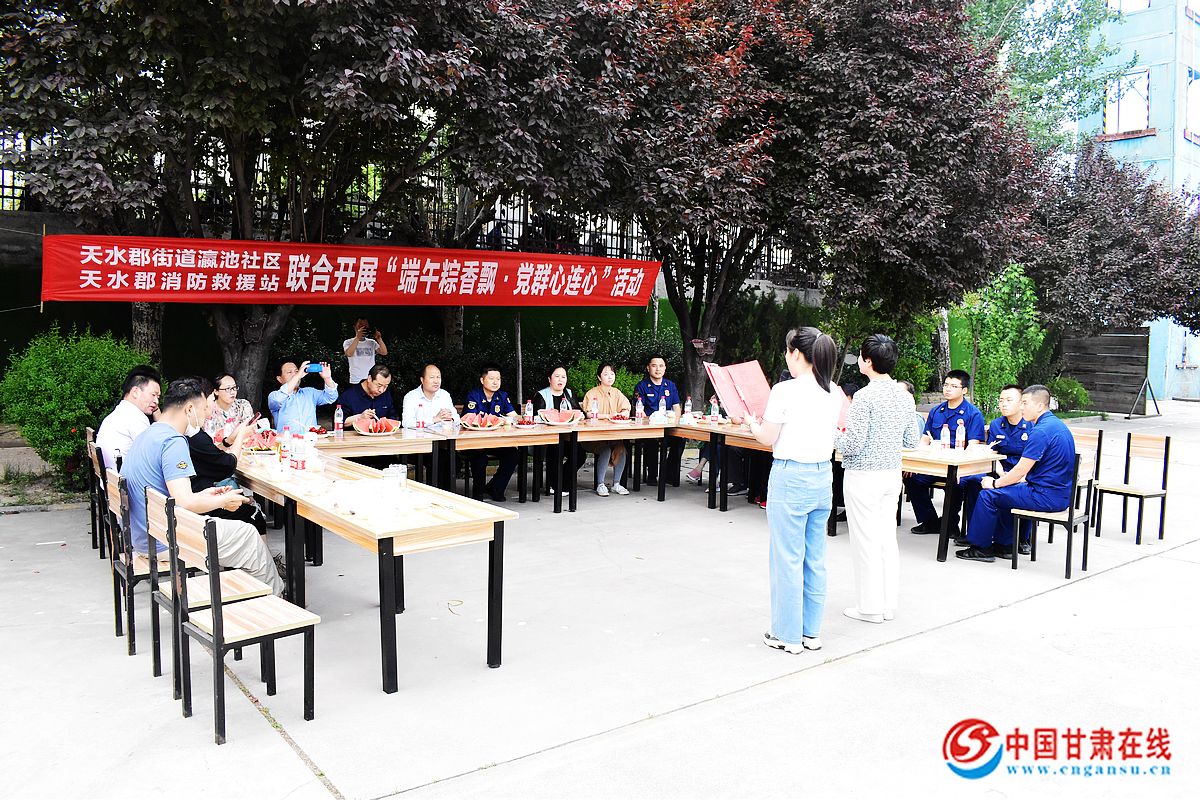 中国甘肃在线秦州讯 为传承中华民族优秀文化传统,弘扬和培育以爱国主义为核心的民族精神,充分挖掘端午节的深厚文化内涵,近日,在队站领导的带领下,秦州区消防救援大队天水郡站联合天水郡瀛池社区开展“端午粽香飘 党群心连心--我们的节日·端午”主题活动。