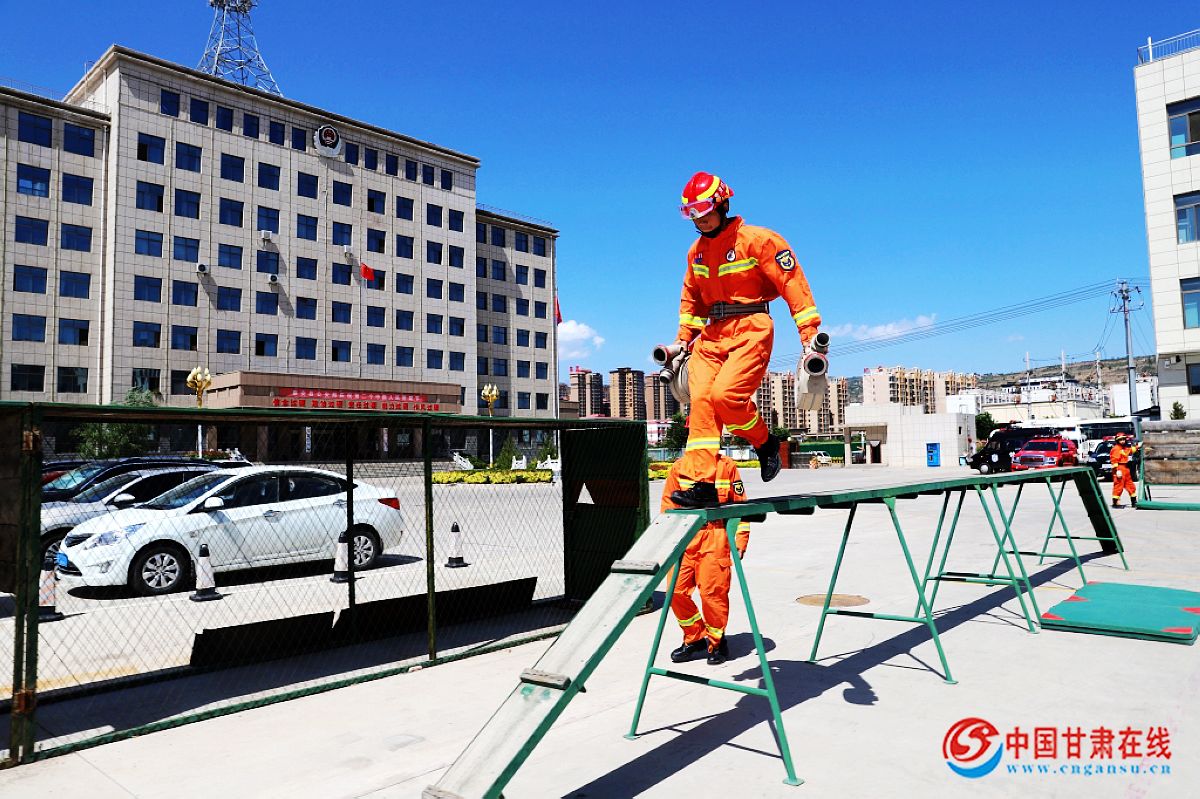 中国甘肃在线秦安讯 为进一步推进全员岗位大练兵热潮,全面提升消防救援人员的整体素质和应急救援能力,近日,秦安县消防救援大队成纪消防救援站积极开展百米障碍救助操训练。