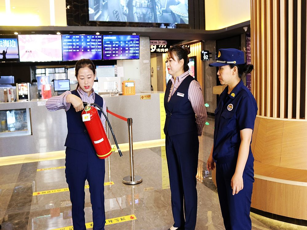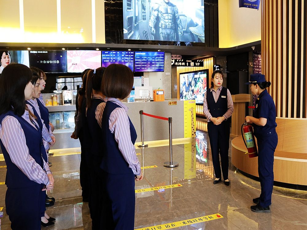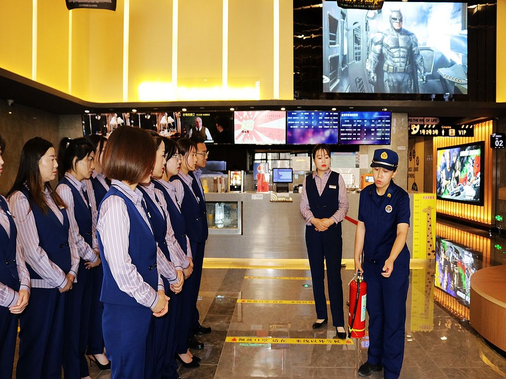培训中,宣传员从火灾初起、发展、熄灭的基本规律,火灾预防、处置初期火灾方法讲起,以贴近实际、实用性强的消防常识入手,采用通俗易懂的方式向员工讲授了消防安全管理规章制度、火场疏散组织、灭火器材的使用等方面的知识,并重点讲解了如何组织开展初期火灾扑救、如何正确报警、如何组织人员疏散逃生等基本知识,提醒员工要提高消防责任意识,切实保障单位安全。并结合电影行业工作特性,利用近年来典型火灾事故案例,解析了忽视消防安全带来的惨痛教训,详细讲解了企业日常安全防范内容及注意事项。“使用灭火器灭火的时候要站在上风口方向,距离火源3至5米,对准火焰根部进行喷射灭火。”期间,宣传员详细讲解了灭火器的使用方法及注意事项,并解答了参训人员提出的疑问。使参训人员通过身临其境的感受,深刻认识到“隐患险于明火、防范胜于救灾”的重要性。