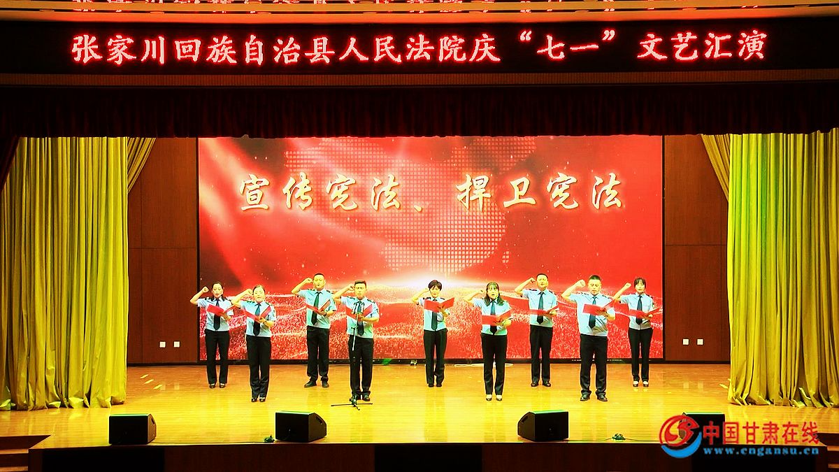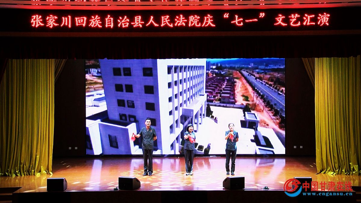 中国甘肃在线张家川讯 为庆祝中国共产党成立101周年,喜迎党的二十大胜利召开,6月28日下午,张家川县人民法院举办了庆“七一”文艺汇演,重温党的光辉历程,歌颂党的丰功伟绩。全体干警观看了演出。