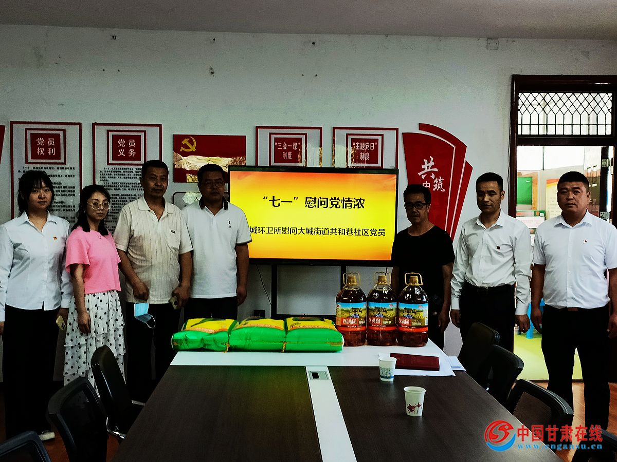 共建单位国家统计局天水调查队党支部、大城环卫所党支部慰问了共和巷社区困难老党员,为他们送去了米面油等生活用品,并与老党员座谈,聆听老党员讲述中国共产党的奋斗历程和发展变化,询问了解老党员的生活状况和身体状况,希望他们继续发挥余热,为建设和谐美丽新秦州贡献自己的力量。