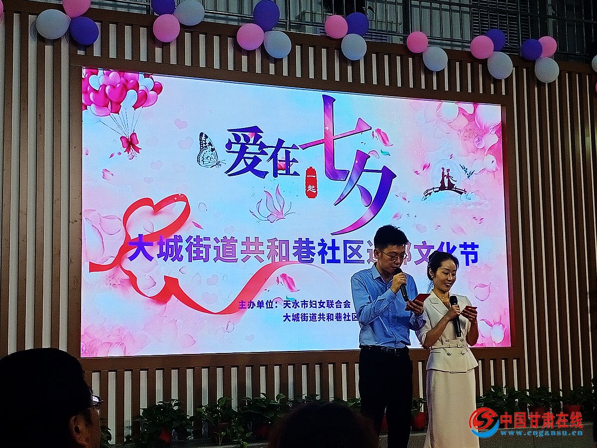 中国甘肃在线网秦州讯 为弘扬中国优秀传统文化,倡导移风易俗,推动居民之间互动互助,促进邻里和谐发展,在民族传统节日七夕节当天,天水市秦州区大城街道共和巷社区党委以近邻党建为引领,组织党员志愿者及居民在金华苑小区开展了 “近邻文化节” 系列活动。