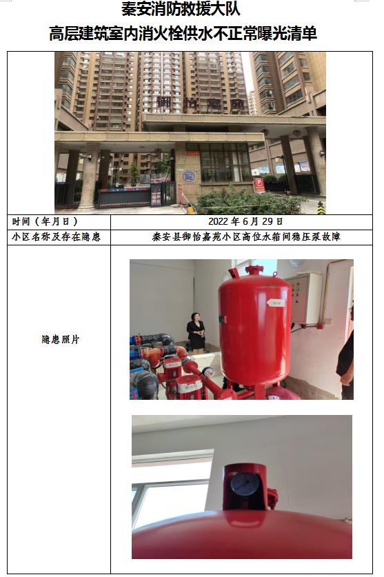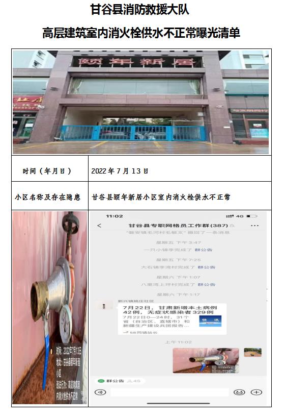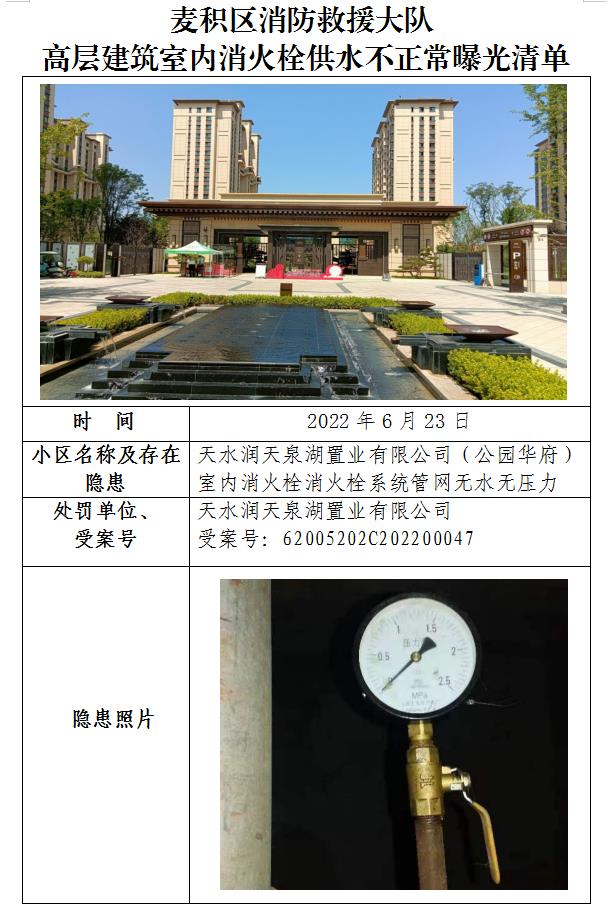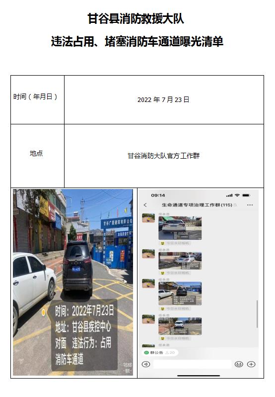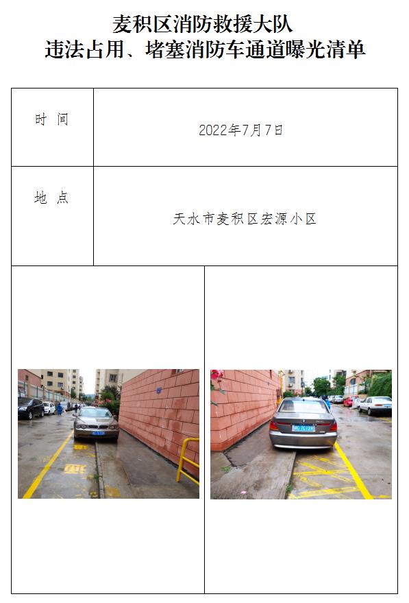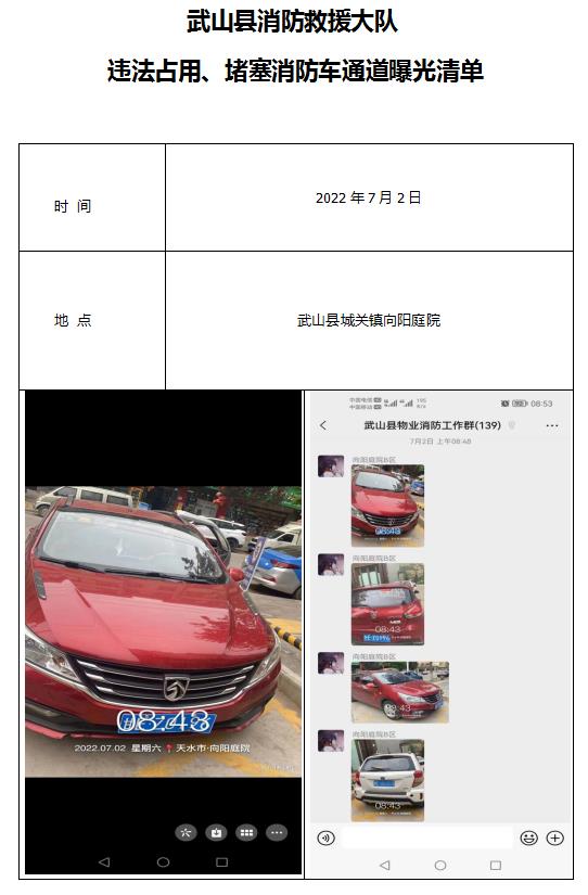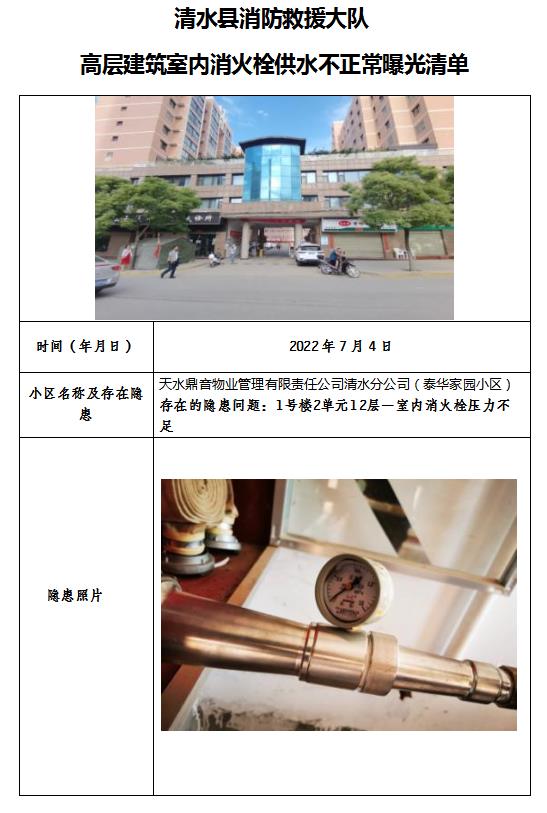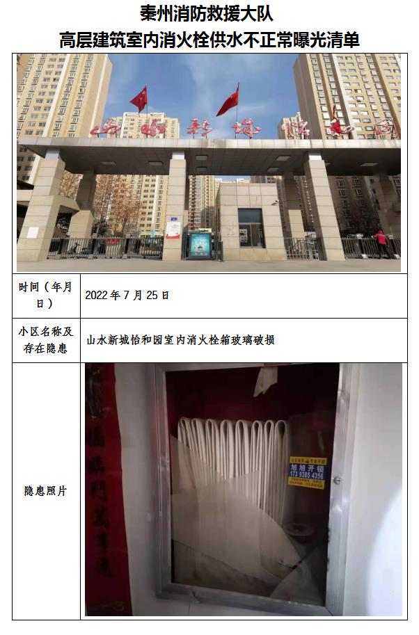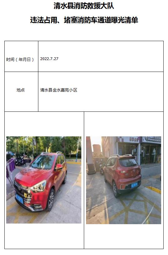 天水市消防救援支队对违法占用、堵塞消防车通道及高层住宅小区室内消火栓供水不正常7月份集中曝光