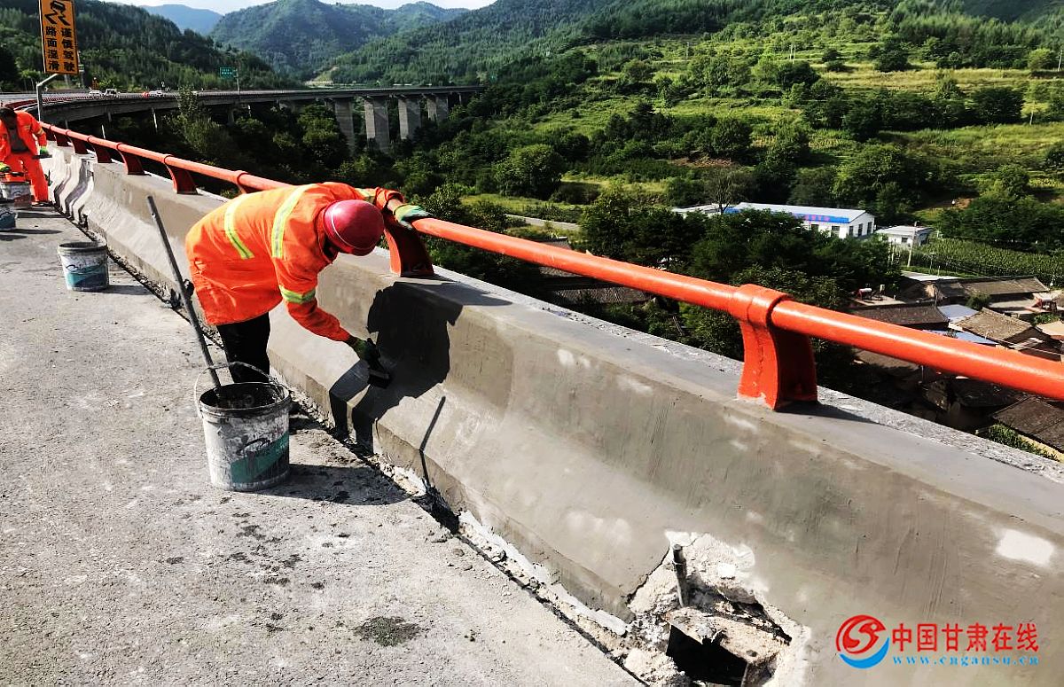 桥隧养护提质增效。加强示范桥隧样板引领,逐桥逐隧制定桥梁、隧道养护方案,提升桥隧养护精细化水平。及时修复桥隧病害,对桥梁铰缝渗水、梁板及桥台水蚀等进行铰缝注胶加固和防腐处理,对桥梁防撞墙腐蚀等进行防腐施工、更换泄水孔;积极处治隧道裂缝及渗水病害,对破损的隧道内壁瓷砖、洞口立面标记进行修补,并对宝天高速桃花坪等44座隧道进行了清洗,不断提升管养桥隧安全耐久水平。