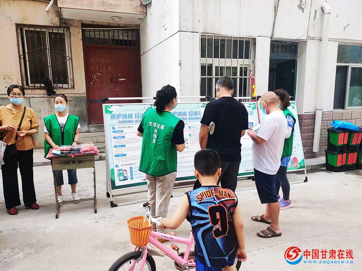 中国甘肃在线秦州讯 为了增强社区居民对垃圾分类知识的了解,进一步提高垃圾分类的意识,助力文明城市创建,近日,天水市秦州区大城街道共和巷社区组织志愿者开展了“垃圾分类进小区”主题宣传活动。