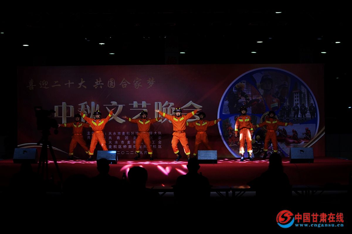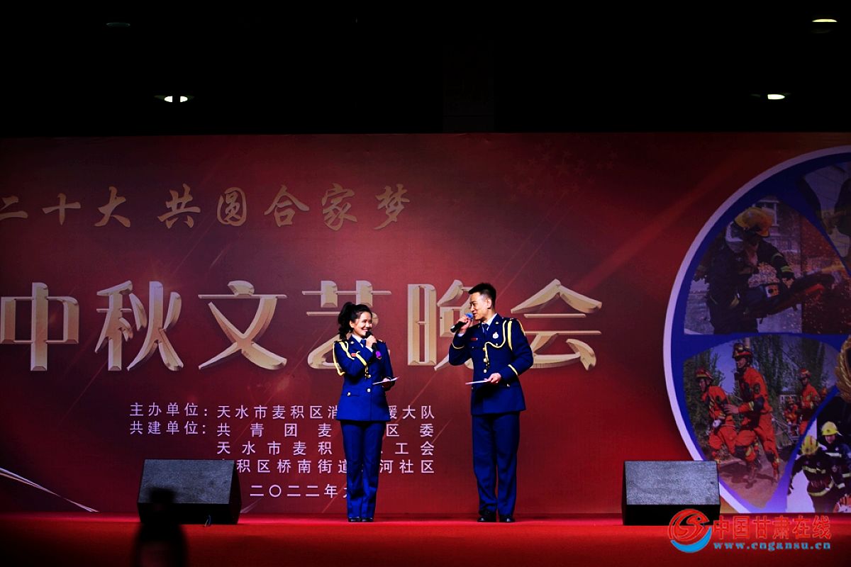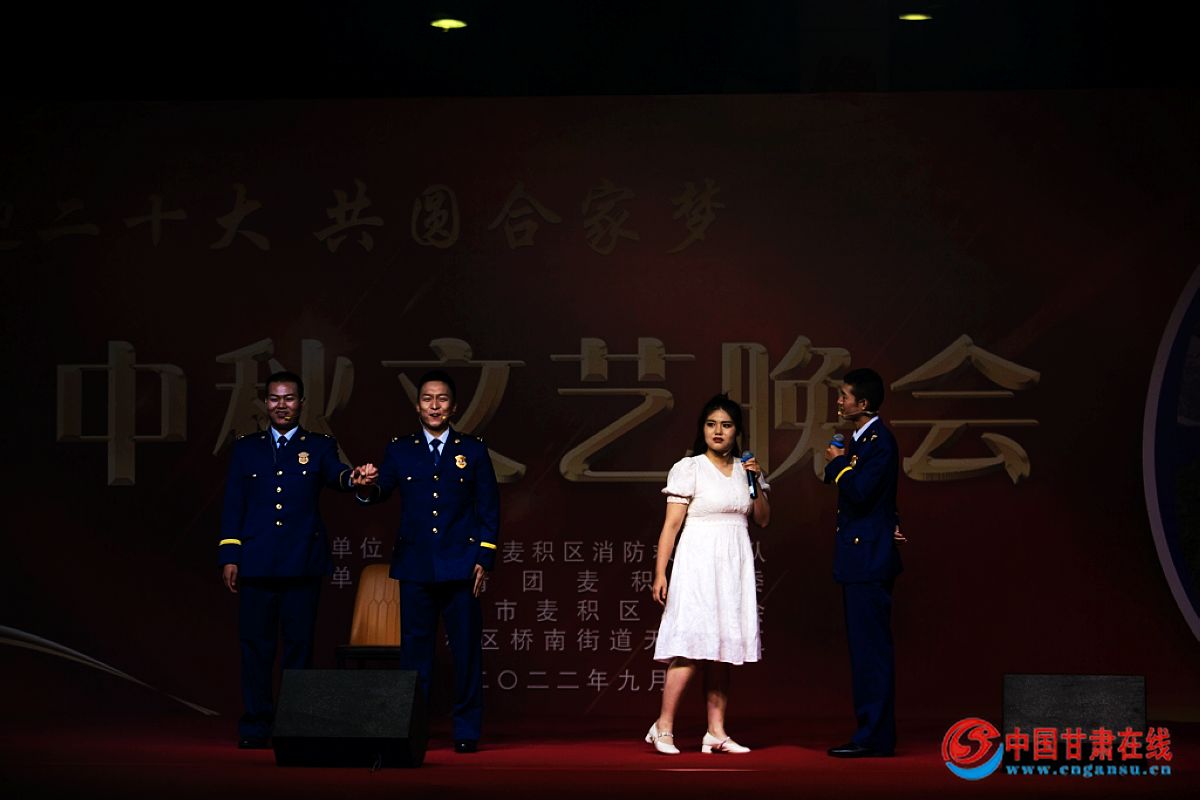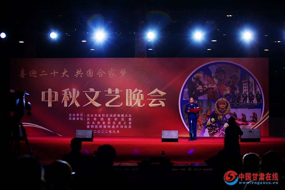 中国甘肃在线麦积讯 为了切实做好战时关怀工作,欢度中秋佳节,舒缓指战员的思乡情绪、缓解执勤战备压力,使全体指战员全身心投入到党的二十大消防安保工作中去。9月8日,麦积大队联合共青团区委、天水市麦积区总工会、麦积区桥南街道天河社区举办“喜迎二十大,共圆合家梦”文艺晚会。天水支队张磊政委、张晓斌主任出席了此次活动。