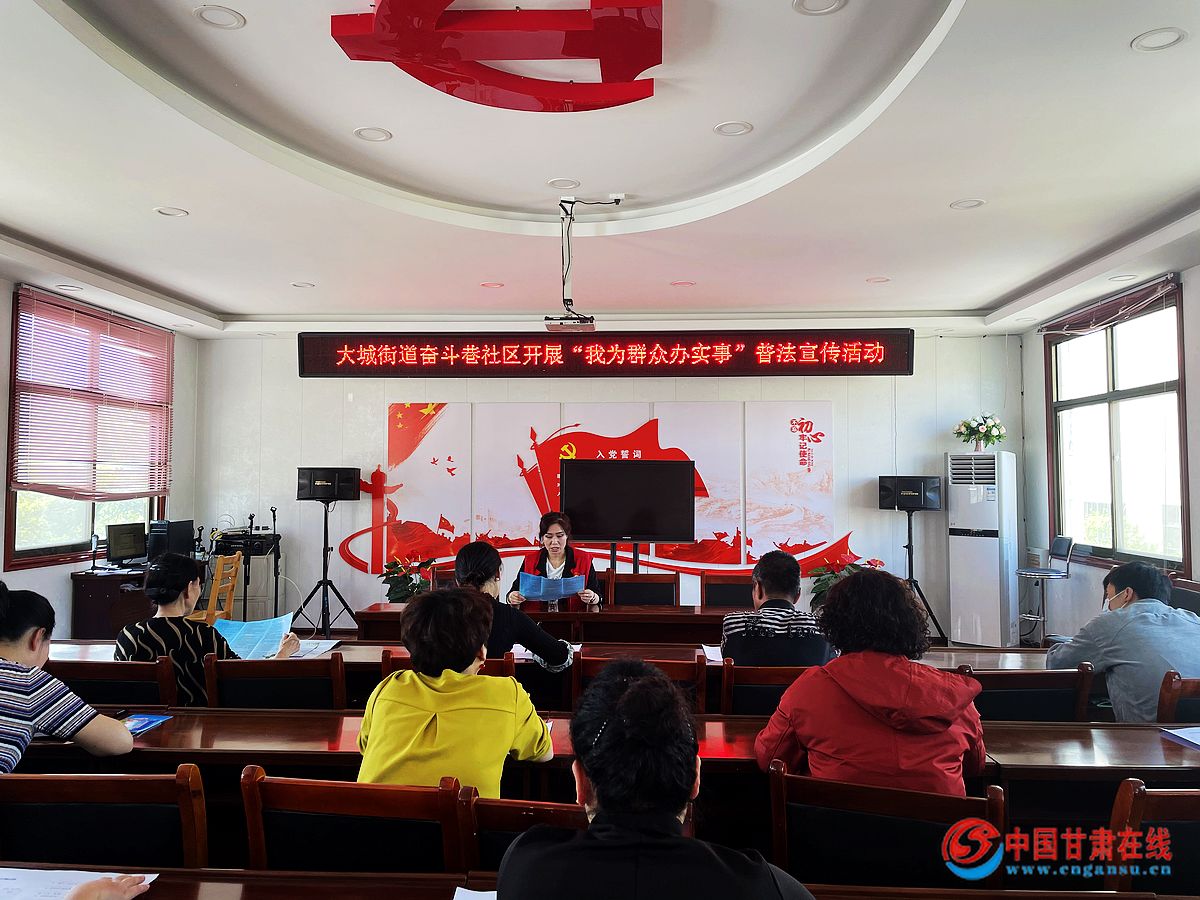 中国甘肃在线秦州讯 为进一步加强辖区居民的法律意识,提高居民群众运用法律武器维护自身合法权益的能力。近日,秦州区大城街道奋斗巷社区开展了“我为群众办实事”为主题的法律知识宣讲活动。