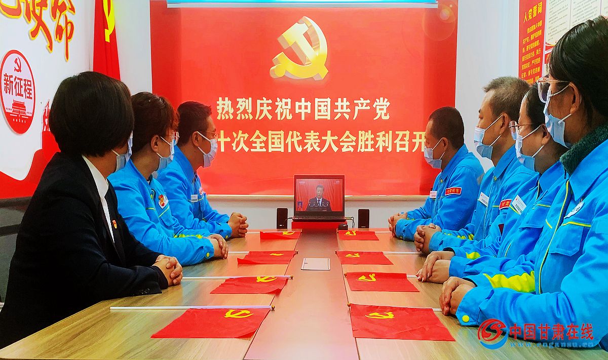 中国甘肃在线天水讯 10月16日上午10时,中国共产党第二十次全国代表大会在北京人民大会堂隆重开幕。中国石油甘肃天水销售分公司党委第一时间组织全体党员、员工集体收看中国共产党第二十次全国代表大会开幕会,聆听习近平总书记所作的党的十九届中央委员会工作报告。