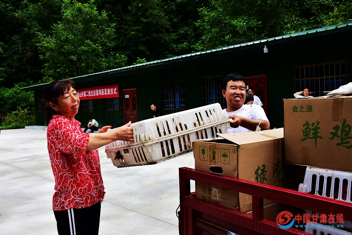 中国甘肃在线两当讯(通讯员 王环)8月3日,陇南市两当县泰山乡开展生态蛋鸡苗发放活动,为农户发放蛋鸡优质鸡苗。